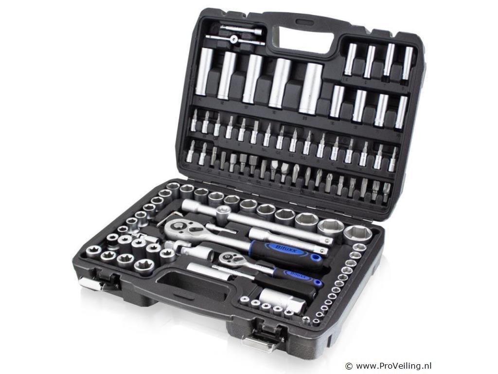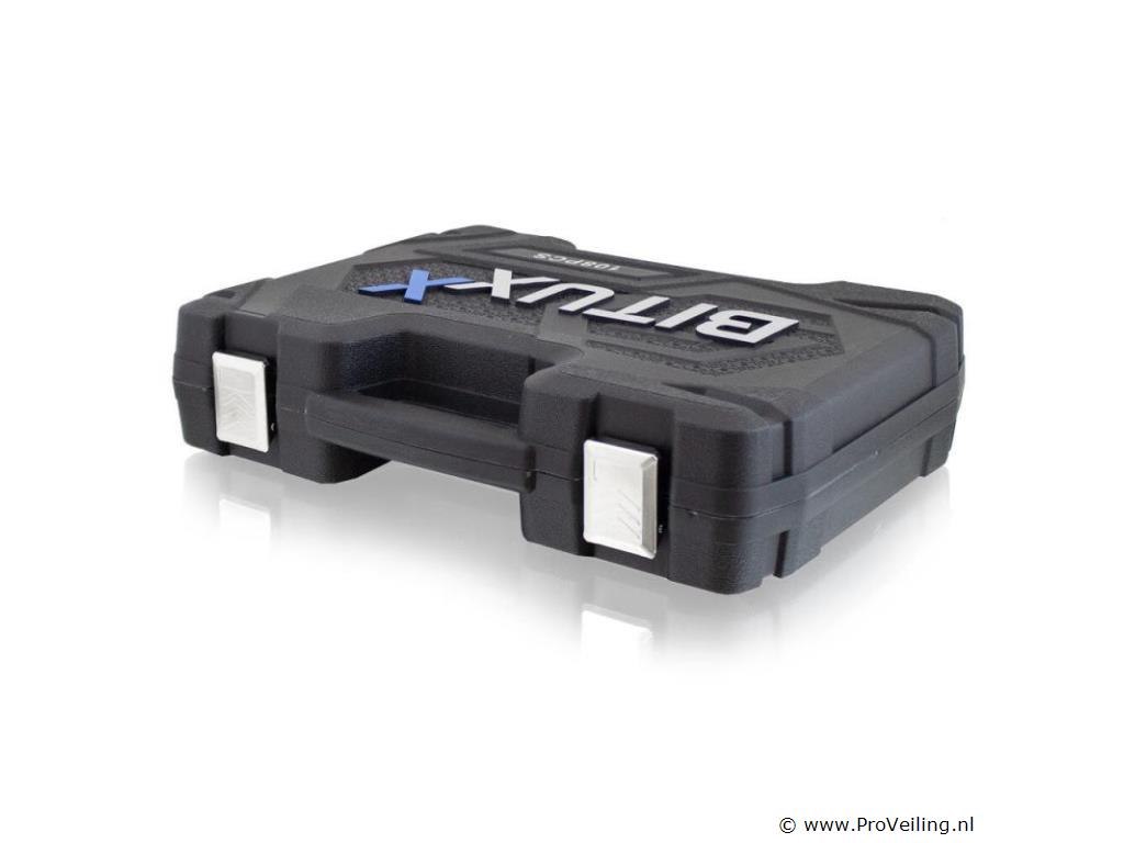 Deze 108-delige dopsleutelset overtuigt door kwaliteit en omvang. De ideale set voor de ambitieuze doe-het-zelver, praktisch en overzichtelijk, veilig opgeborgen in de koffer. Het gereedschap is gemaakt van chroom-vanadium-staal, het vanadium zorgt voor een verhoogde taaiheid met een fijnere structuur en het chroomgehalte verbetert de corrosiebescherming en hardbaarheid. Technische specificaties: Materiaal kast: kunststof Gereedschapsmateriaal: chroom-vanadiumstaal Leveringsomvang: 17x 1/2" doppen: 10, 11, 12, 13, 14, 15, 16, 17, 18, 19. 20, 21, 22, 24, 27, 30 32 mm 8x 1/2" Torx doppen: EI0, ??11, 12, 14, 16, 18, 20, 24mm 5x 1/2" extra diepe doppen: 14, 15, 17, 19, 22 mm 2x 1/2" bougiedoppen: 16 mm & 21 mm 2x 1/2" verlengstangen: 5" & 10" 18x 1/4" doppen: SL4, 5.5, 6.5, PH, 2 PZ1, 2e HEX3, 4, 5, 6, T8, 10, 15, 20, 25, 27, 30 13x 1/4" doppen: 4, 4,5, 5, 5,5, 6, 7, 8, 9, 10, 11, 12, 13, 14 mm 8x 1/4" extra diepe doppen: 6, 7, 8, 9, 10, 11, 12, 13mm 5x 1/4" Torx doppen: E4, 5, 6, 7, 8 2x 1/4" verlengstukken: 2" & 4" 1x 1/4" T-greep 1x 1/4" insteekgreep 6" 2x ratel: 1/4" & 1/2" 2x cardangewrichten: 1/4" & 1/2" 1x driedubbele adapter 17x bits SL8, 10, 12 T40, 45, 50, 55, 60 PH3, 4 Pz3, 4 HEX7, 8, 10, 12, 14 3x inbussleutels: 1,5, 2, 2,5 mm 1x bithouder 1x kunststof koffer