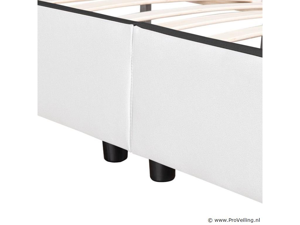 Slaapcomfort is... wakker worden en ontdekken dat het geen droom was. Want het gestoffeerde bed Sevilla (140x200 cm, wit) is echt heerlijk comfortabel en robuust tegelijk. De stabiele lattenbodem biedt de ideale basis voor een gezonde en rustgevende slaap. Dankzij de gecapitonneerde rugleuning kun je ook heerlijk ontspannen tijdens het lezen of tv kijken. Ook biedt het ruimte voor chique led-verlichting die je slaapkamer baadt in sfeervolle kleuren. De moderne uitrusting en het stijlvolle design overtuigen zowel jongeren als volwassenen. Door zijn middelgrote formaat past hij ook perfect als tweepersoonsbed in kleine slaapkamers of logeerkamers. Technische specificaties: Producttype: bedframe Kleur wit Stijl: Modern Materiaal frame: MDF hout, metaal Materiaal bekleding: kunstleer (84% PVC, 16% polyester) Verlichting: LED-strip met afstandsbediening Lichtkleur: 16 verschillende kleuren Vermogen: 14.3W Lichtstroom: 234 lm Kleurtemperatuur: 2000 - 10000K Afmetingen (ongeveer): Afmetingen: 149,5 × 217 cm Ligoppervlak: 140 × 200 cm Hoogte hoofdbord: 74 cm Dikte hoofdbord: 7,5 cm LED-balk: 9 x 140,5 cm Hoogte zijpanelen: 31,5 cm Framedikte zijkanten: 4 cm Hoogte voeteneinde: 27,5 cm Framedikte voeteneinde: 8,5 cm Voeten: 4 cm Opmerkingen over de lichtbron: Het product bevat LED-verlichting. De meegeleverde LED-verlichting is alleen bedoeld voor scène-/accentverlichting en is niet geschikt voor andere toepassingen. De meegeleverde lampen zijn niet verwisselbaar, maar verwijderbaar. De meegeleverde led-verlichting is via IR-afstandsbediening in te stellen en te dimmen. De meegeleverde LED-verlichting moet worden verwijderd voor verwijdering volgens de richtlijn voor afgedankte elektrische en elektronische apparatuur en ElektroG en afzonderlijk worden afgevoerd. Leveringsomvang: 1 x gestoffeerd bed 1 x lattenbodem 1 x afstandsbediening 1 x instructie Let op: Het matras is niet inbegrepen. U ontvangt het product goed verpakt als bouwpakket voor zelfmontage per pakketdienst. Dit artikel bestaat uit 2 dozen, het kan logistiek voorkomen dat het in meerdere dagen geleverd wordt. Onderdelen kunnen zich in het hoofdbord bevinden.