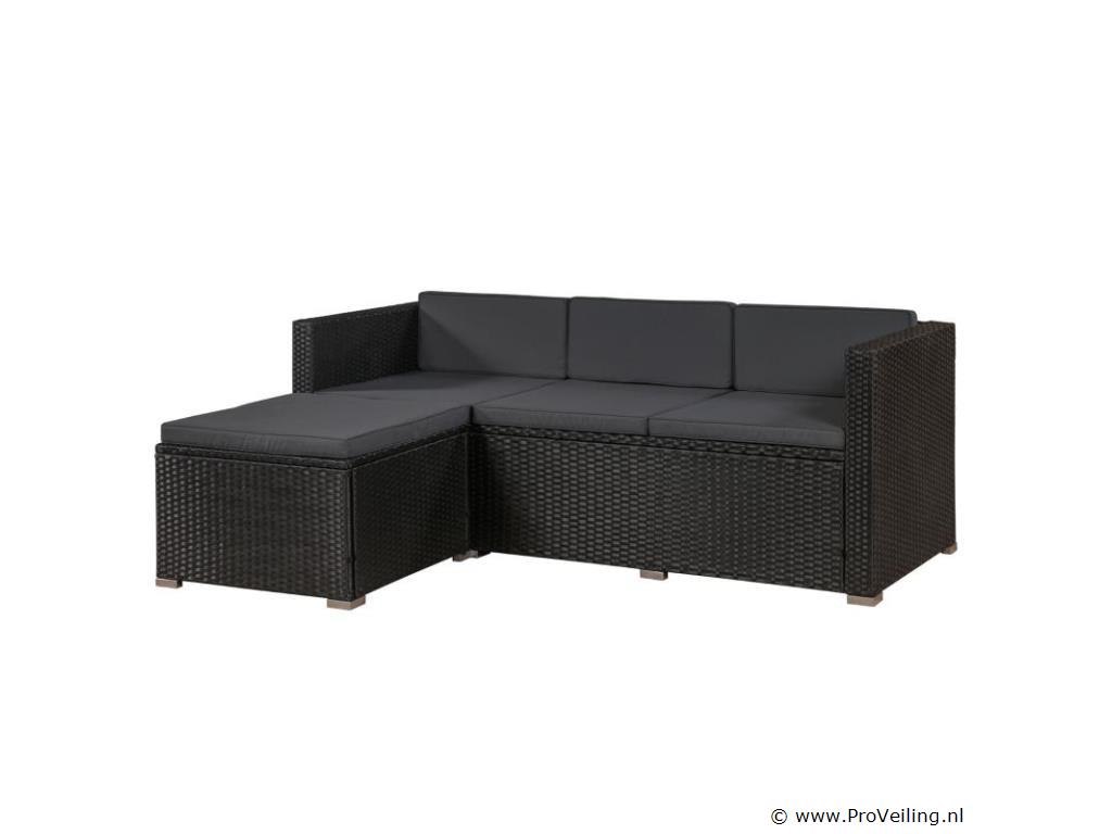 Ben je op zoek naar een comfortabele en grote loungeset voor in je tuin, terras of balkon? Met de zitset "Punta Cana L" verander je je buitenruimte in een stijlvolle plek om te ontspannen en je goed te voelen. Gezellige avonden met familie, vrienden of buren worden een belevenis in de buitenlucht. De unieke rotan look in zwart met grijze vulling geeft je nieuwe loungemeubel een moderne charme. Creëer je eigen oase van welzijn om te ontspannen en samen te zitten. Technische specificaties: Materiaal: Weefsel: polyrotan vezels Basis: staal Tafelblad: glas Hoezen: schuim, polyester Kleur: Vlecht: zwart Tafelblad: helder Kussenslopen: donkergrijs Afmetingen (ongeveer): Tafel: 61 × 61 × 37 cm (L x B x H) Hoekbank: 178 × 69 × 65 cm (L x B x H) Fauteuil: 70 × 69 × 65 cm (L x B x H) Kruk: 61 × 61 × 37 cm (L x B x H) Dikte zitkussen: 5 cm Dikte glasplaat: 0,5 cm Breedte rugkussen: 54 cm Zitkruk: 60 × 60 cm Leveringsomvang: 1x tafel 1 x hoekbank 1 x fauteuil 1 x kruk 5 x zitkussens 4 x rugkussens 1 x montage-instructies Let op: U ontvangt het product goed verpakt als bouwpakket voor zelfmontage per pakketdienst. Dit artikel bestaat uit 2 dozen, het kan logistiek voorkomen dat het in meerdere dagen geleverd wordt.