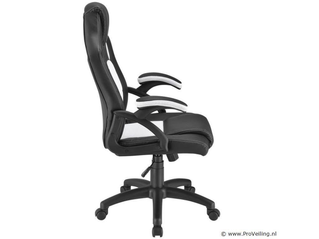 De gezellige Racing bureaustoel Montreal (wit) overtuigt met een hoog zitcomfort. Met zijn ergonomisch gevormde zitting, de kantelbare rugleuning en zitting en de gecapitonneerde armleuningen laat de moderne bureaustoel in trendy racerdesign urenlang comfortabel zitten. De draaistoel is daarom ideaal om thuis op kantoor te werken, huiswerk te maken en te leren, en voor gepassioneerde gamers om op de computer te spelen. Technische specificaties: Materiaal: kunststof, metaal, imitatieleer, mesh inzetstuk Kunstleer kleur: zwart Netkleur: wit Maximale belasting: 120 kg Afmetingen (ongeveer): Totale hoogte: 101 - 111 cm Hoogte rugleuning: 65 × 66 cm Zitting: 47 x 52 cm Zithoogte: 46 - 56 cm Zitbreedte: 47 cm Zitdiepte: 52 cm Leveringsomvang: 1 × bureaustoel 1 × montage-instructies