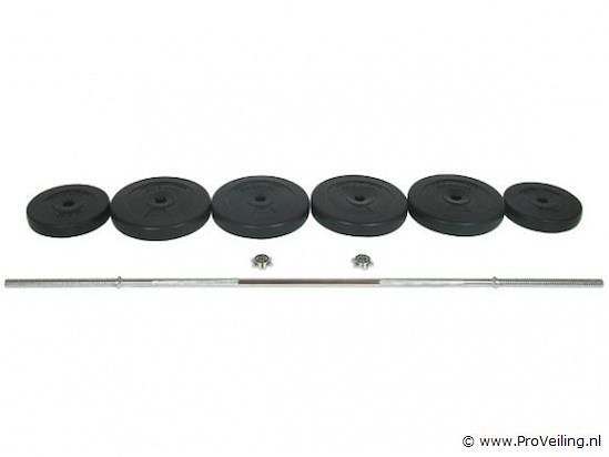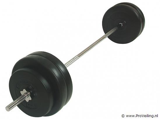 Trainen met een halterstang is de ideale manier om een strak en gezond lichaam te krijgen. Er zijn verschillende gewicht schijven om mee te trainen. De 24 centimeter lange handvatten zijn geribbeld, die voorkomt uitglijden als gevolg van zweet op de handen. De gewichten hebben een beschermingslaag dat je vloer beschermt bij het plaatsen van de halter op de grond na je training. De verschillende gewicht schijven worden vastgezet met een schroefdop. Details: Totaal gewicht incl. stang 60 kg Anti-slip handgrepen Gewichten hebben een kunstof behuizing Schroefdop sluiting Specificaties: Afmetingen stang (L x Ø): ca. 165 x 2,5 cm Gewicht ca. 6,5 kg Afmetingen handgreep (L): ca. 24 cm Halterschijven 2 kg (Ø x H): ca. 21 x 4,2 cm Halterschijven 5 kg (Ø x H): ca. 26 x4,8 cm Halterschijven 10 kg (Ø x H): ca. 31 x 5,4 cm Levertijd: 2 tot 5 werkdagen
