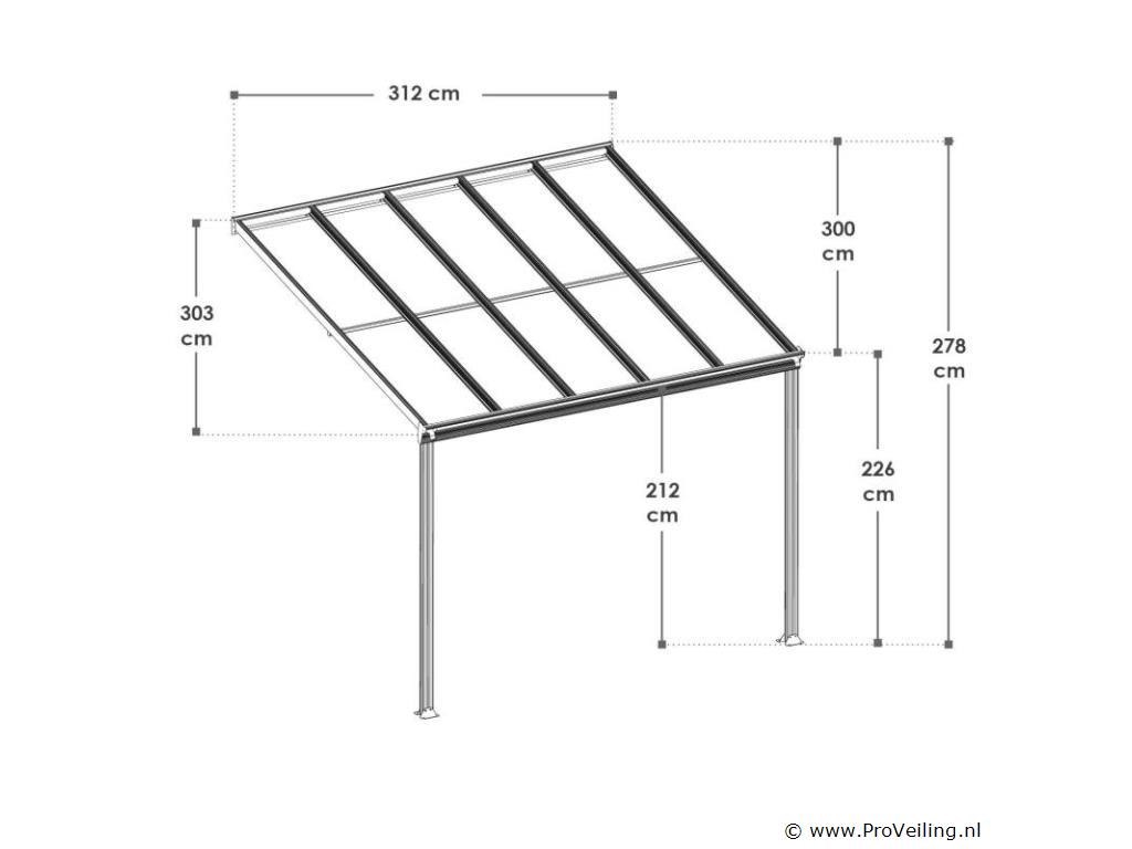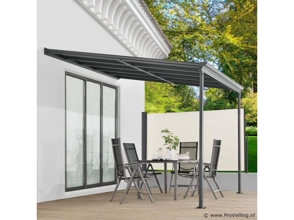 Bent u op zoek naar een moderne, stabiele en hoogwaardige zonwering? De aluminium terrasoverkapping van 3 x 3 m Borneo (antraciet) is de perfecte overkapping voor uw terras. Door de robuuste metalen constructie en de elegante uitstraling dient het dak jarenlang als stijlvolle zonwering. Of het nu gaat om de felle zon of een regenbui - de terrasoverkapping biedt u bescherming tegen regen en schadelijke UV-straling. Zo breng je je vrije tijd altijd ontspannen buiten door. Want met de betrouwbare overkapping ben je goed beschermd! Tegelijkertijd beschermt het ook je geliefde tuinmeubelen tegen weersinvloeden. Technische specificaties: Materiaal frame: aluminium gepoedercoat Materiaal aansluitingen: verzinkt staal Materiaal dak: polycarbonaat met UV-coating Kleur frame & webplaten: donkergrijs Aantal berichten: 2 Aantal regengoten: 1 Aantal kanaalafvoer: 2 Dakdruk draagvermogen: 70 kg/m2 Windkracht: Tot 100 km/u (windkracht 10) Afmetingen (ongeveer): Breedte: 312cm Diepte: 303 cm Hoogte voorkant: 212 cm Hoogte voorzijde: 226 cm Hoogte achter: 278 cm Metaaldikte: 1 mm Dikte dubbelwandige platen: 6 mm Afmetingen paal: 4 x 10 cm Leveringsomvang: 1 x terrasoverkapping 1 x instructie
