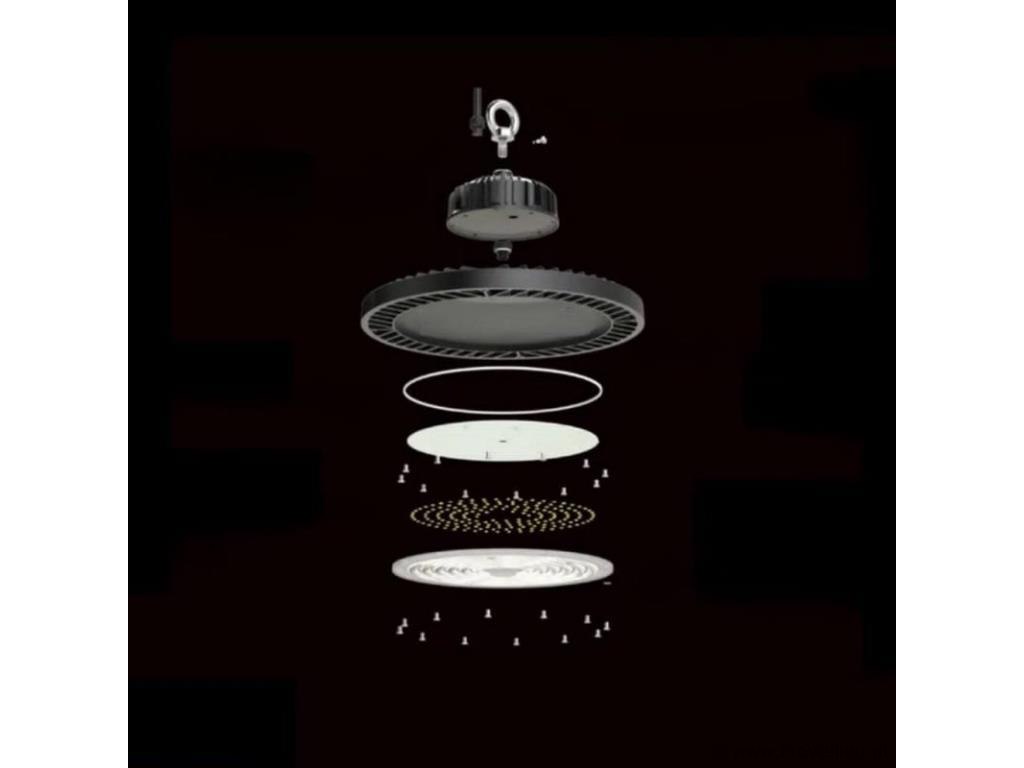 4 x Highbay UFO 100 Watt LED in PRO-ontwerp biedt hoge efficiëntie met 12.000 lumen bij 100 lumen per watt - Uitgerust met Professioneel LED voor superieure helderheid en betrouwbaarheid - Dimbaar met een schakelaar die 3 verschillende standen biedt: 60%/80%/100% vermogen - Aangedreven door een hoogwaardige Lifud-driver, die stabiele prestaties garandeert - Koud wit licht bij 6500K voor heldere, duidelijke verlichting - Waterdicht met een IP65-classificatie, ideaal voor zowel binnen- als buitengebruik - Afmetingen: Ø 260mm x 102mm voor eenvoudige installatie - Duurzame constructie van gegoten aluminium met een PC-lens, met een levensduur van 30.000 uur - 90° stralingshoek voor brede lichtdekking - Energiezuinig met een power factor 0,95 - Hoge CRI 80 voor nauwkeurige kleurweergave - Compatibel met 110-265V - Geleverd met 5 jaar garantie voor gemoedsrust - Weinig onderhoud door de lange levensduur - Efficiënte warmteafvoer voorkomt oververhitting - Milieuvriendelijk en kosteneffectief, verlaagt de energierekening - Biedt flikkervrij, stabiel licht.