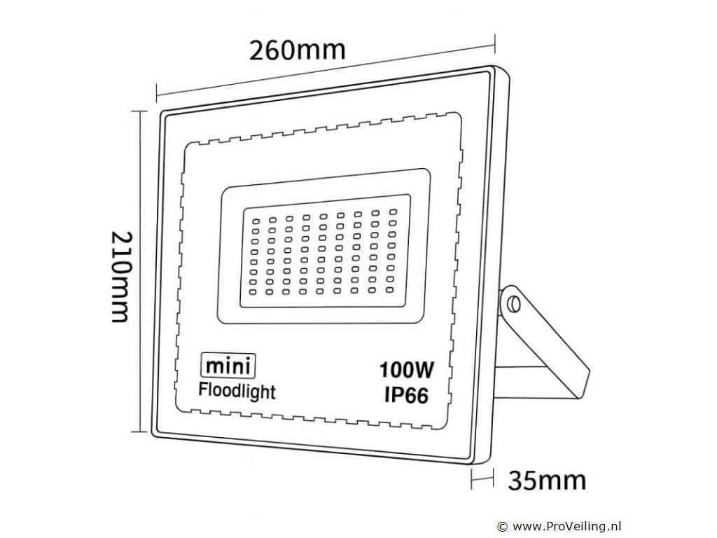 6 x LED-spot – Vermogen: 100W – Kleurtemperatuur: 6500K (Koud wit) – Lichtvermogen: 8000 lumen – Afmetingen: 260 x 210 x 35 mm – LED-type: Osram SMD – TensioN: 110-240V (50/60Hz) – Inclusief transformator – Levensduur: 30.000 uur – Beamingshoek: 120° – Beschermingsgraad: IP65 (dicht) – Geschikt voor gebruik binnen en buiten – Ideaal voor verlichting van grote oppervlakken.