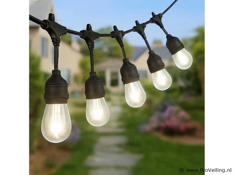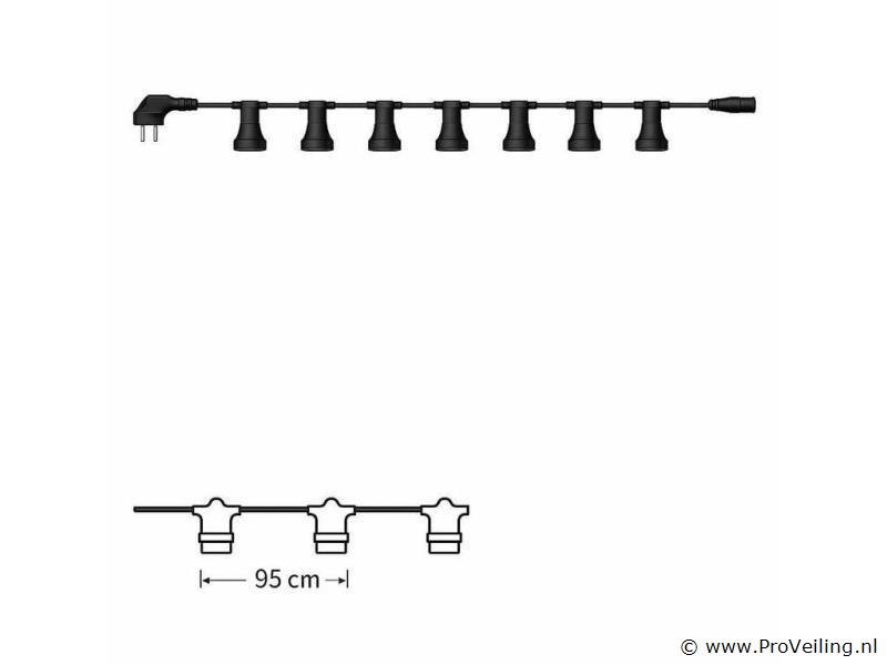 4 x 10 Meter lichtslinger is voorzien van een E27-fitting en gebruikt een 2-aderige kabel van 0,75 mm² met IP44 spatwaterdichte bescherming, geschikt voor zowel binnen- als buitengebruik. De lichtslinger werkt op 220V en heeft een maximale belasting van 500W. De afstand tussen de lamphouders bedraagt 95 cm, met een aansluitsnoer van 1000 mm. Dankzij de geïntegreerde stekker en contrastekker kunnen meerdere lichtslingers eenvoudig aan elkaar worden gekoppeld. Lampen niet inbegrepen.