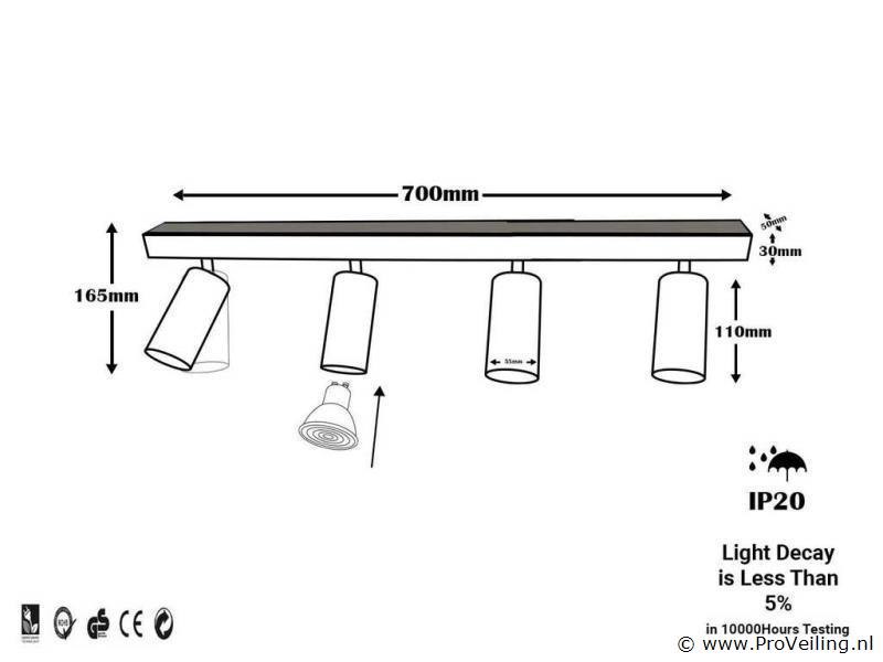 6 x opbouwarmatuur GU10 – 4 draaibare spots – Zwart – Fitting: GU10 – Afmetingen: 700 x 165 mm – Richtbare spots: 350° rotatie en helling 70° – In aluminiumNium van hoge kwaliteit – Kleur: zwart – Spanning: 85-265V (50/60Hz) – Beschermingsgraad: IP20 – Geschikt voor gebruik binnenshuis – GU10-lampen niet inbegrepen – Inclusief montageset – Ideaal voor accent-, werk- of decorverlichtingAtif – Lange levensduur en premium design.