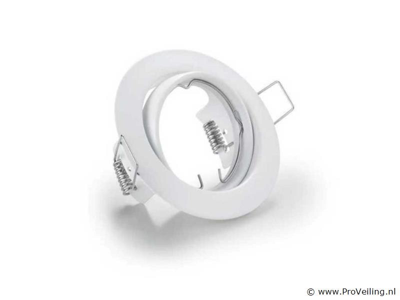 100 x GU10 inbouwarmatuur met lamphouder – Ingebouwd model – Ronde vorm – Kleur: Wit – Gemaakt van aluminiumM van hoge kwaliteit – Afmetingen: Ø 80 x 25 mm – Inbouwdiameter: Ø 70 mm – Draaibaar op ±45° voor flexibele verlichting – Beamingshoek: 120° – Inclusief GU10 fitting – Compatibel met alle GU10 en MR16 spots (LED of halogeen) – PRection: IP20 (binnengebruik) – Lampen niet inbegrepen.