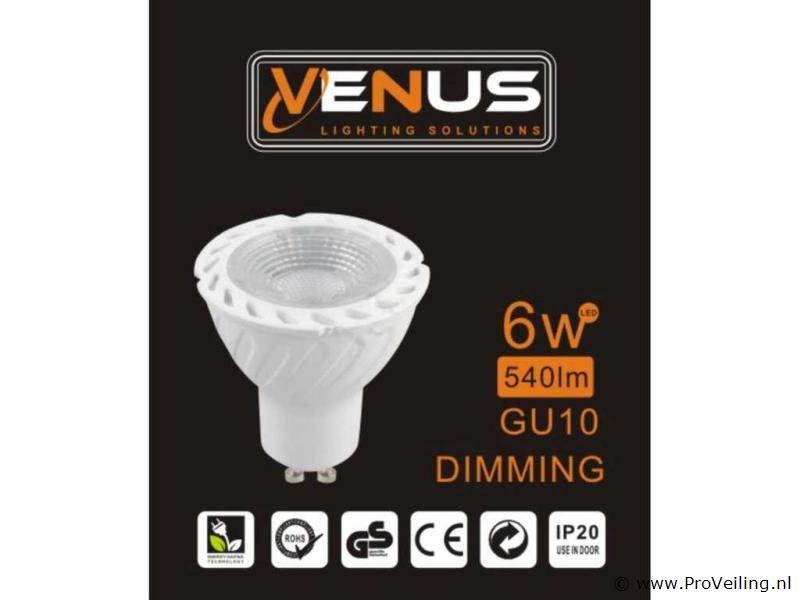50 x LED-spot GU10 – Vermogen: 6W (gelijk aan 60W) – Variabele intensiteit (dimbaar) – Kleurtemperatuur: 6500K (Koud wit) –Lichtstroom: 540 lumen – Beamingshoek: 38° – Vorm: rond – Kleur: Wit – IRC 80 – Afmetingen: Ø 50 x 55 mm – Aansluiting: GU10 – Spanning: 220-240V (50/60 Hz) – Levensduur: 30.000 uur – Beschermingsgraad: IP20 (gebruik binnenshuis) – TYpe: LED GU10 – Biedt krachtige en heldere verlichting, ideaal voor kantoren, winkels en ruimtes die fel licht nodig hebben.