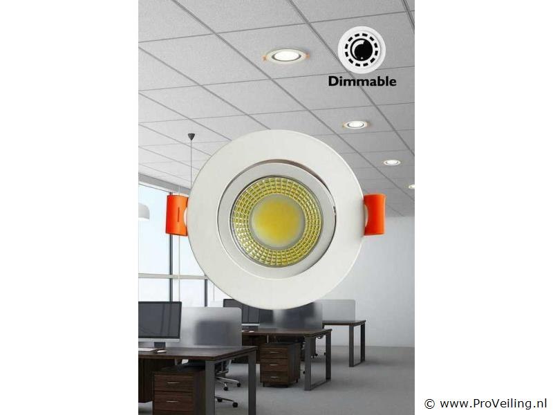 50 x Inbouw LED-spot – Vermogen: 7W – TechnologieCOB – Variabele (dimbare) en draaibare intensiteit – Kleurtemperatuur: 6500K (koud wit) – Lichtstroom: 630 lumen – IRC 80 – Beamhoek: 40° – Ronde vorm – Kleur: wit – Materiaal: metaal – Afmetingen: Ø 88 x 50 mm – Diameter van deCast: Ø 70 mm – Voltage: 220-240V (50/60Hz) – Beschermingsgraad: IP20 – Inclusief lichtbron – Levensduur: 30.000 uur – Perfect geschikt voor moderne en functionele binnenverlichting.