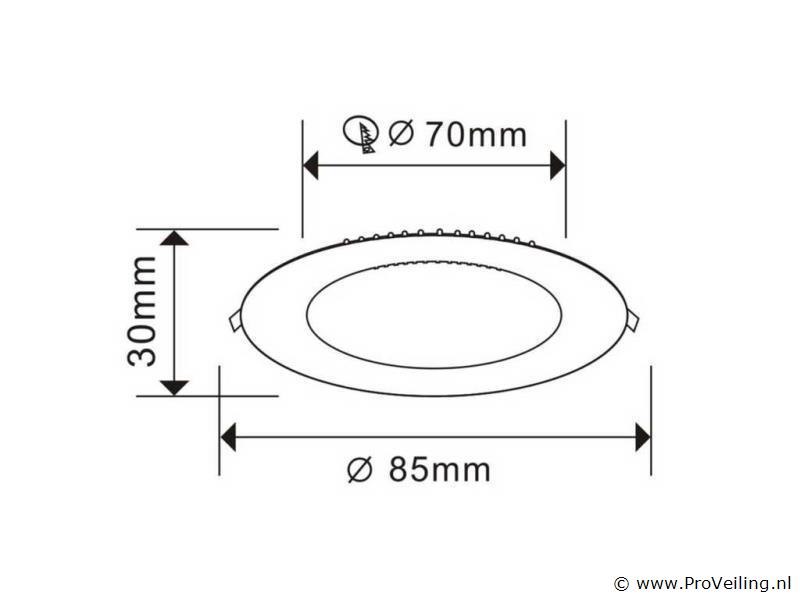 25 x LED-paneel 5W LED SMD - Inbouw - rond - 3000K - Inbouw LED-paneel - 5W - LED-type: SMD - Vorm: rond - Kleurtemperatuur: 3000K (Wit) - PuLichtsterkte: 400 lumen - Spanning: 220-240 V - Beschermingsgraad: IP20 - Levensduur: 30.000 uur - Inclusief stuurprogramma - Afmetingen: 85 mm x 20 mm - Montagediameter: 70 mm - Beamingshoek: 120° - Geschikt voor gebruik binnenshuis