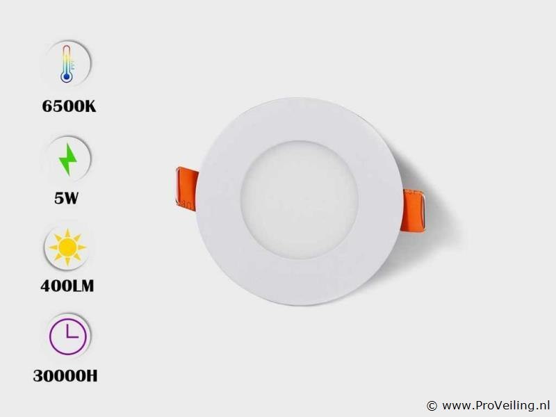 50 x LED-paneel 5W LED SMD - Inbouw - rond - 6500K - Inbouw LED-paneel -5W - LED-type: SMD - Vorm: rond - Kleurtemperatuur: 6.500 K (koud wit) - Lichtvermogen: 400 lumen - Spanning: 220-240 V - Beschermingsgraad: IP20 - Levensduur: 30.000 uur - Inclusief stuurprogramma - Afmetingen: 85 mm x 20 mm - DiaMontagemeter: 70 mm - Beamingshoek: 120° - Geschikt voor gebruik binnenshuis