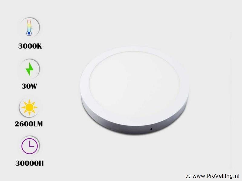10 x LED-oppervlaktepanelen – Ronde vorm – Vermogen 30W – LED-type: SMD – Kleurtemperatuur 3000K (warm wit) – Lichtstroom: ˜ 2400 lumen – Afmetingen: 280 x 28 mm – Spanning: 220-240V (50/60 Hz) – Inclusief stuurprogramma's – Bescherming: IP20 – Levensduur: 30.000 uur – Beamhoek: 120° – Inclusief montagekit – Ideaal voor kantoren, winkels en binnenruimtes.