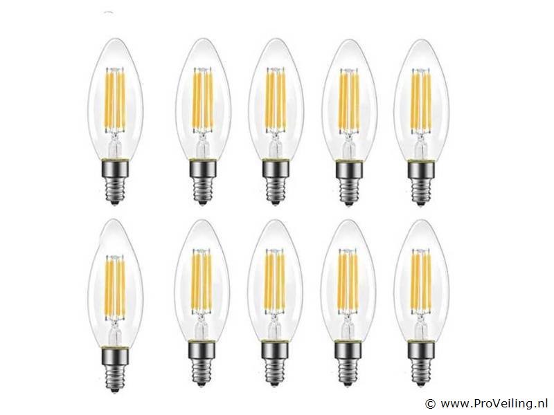 50 x C35 LED-gloeidraadlamp – 6W – E14 – Dimbaar – 2700K – Decoratieve vlamstijl – E14 fitting staNdard – Variabele intensiteit voor flexibele verlichting – Kleurtemperatuur 2700K (warm wit) – Lichtvermogen 500 lumen – Vervangt een gloeilamp van 50W – LED-type: Filament – Afmetingen: 35 x 112 mm – Spanning: 85-240 V – Hoek320° bundel – Levensduur 30.000 uur – IP20 klasse, gebruik binnenshuis – Energiezuinig met strak design