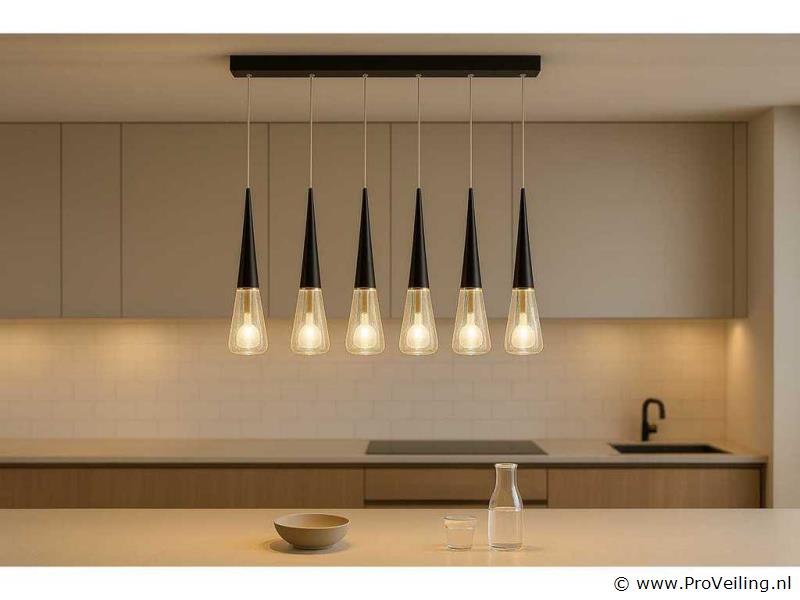 LED hanglamp model B043/5 – Kleurtemperatuur 3000K (warm wit) – BreedteA: 600 mm – In hoogte verstelbaar – Lichtbron: geïntegreerde LED-strip – Voltage: 220-240V (50/60 Hz) – Inclusief montageset – Perfect geschikt voor moderne binnenverlichting: eetkamer, woonkamer, keuken of kantoor – 3 jaar garantie.