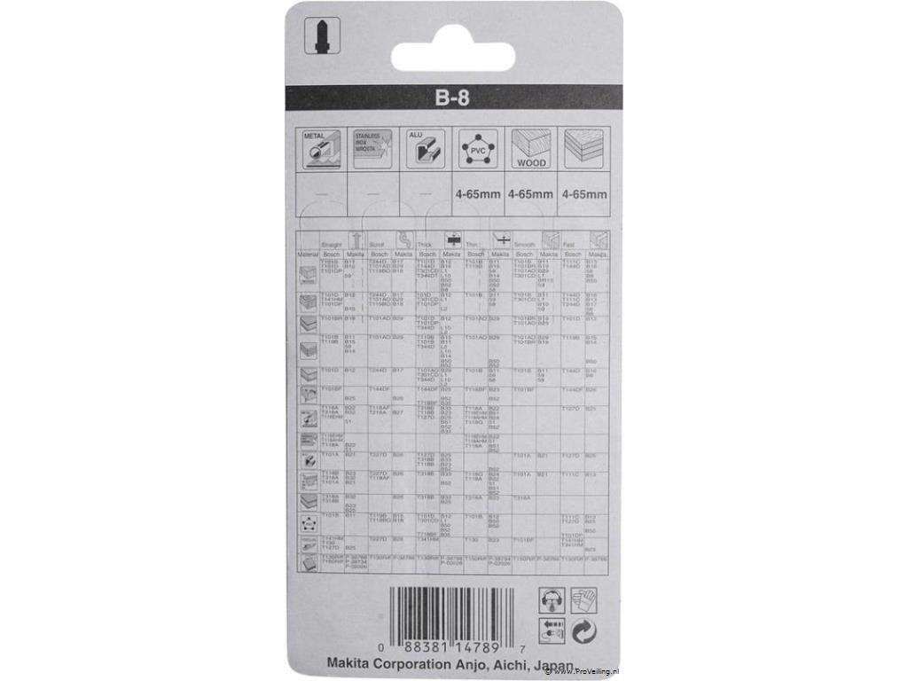 HCS decoupeerzaagblad B-8, gefreesd, gezet en geslepen. Voor het snel, grof en recht zagen in dik materiaal: hout, multi- en triplex en kunststoffen.