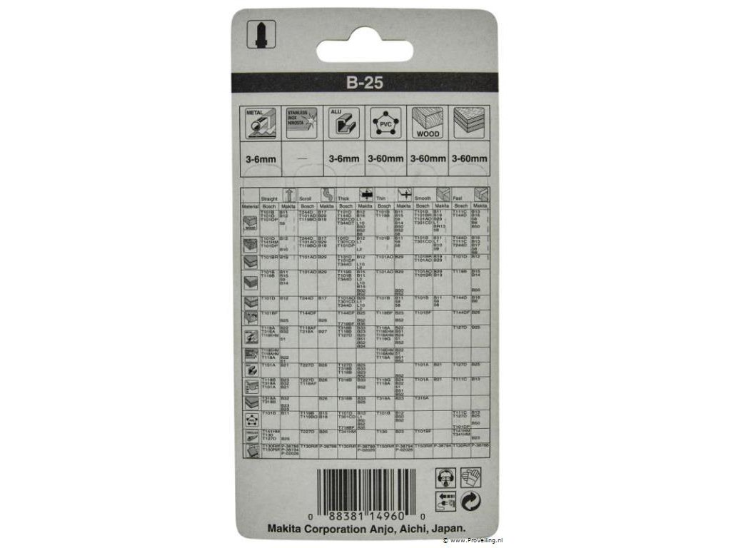 HSS decoupeerzaagblad B-25, gefreesd en gezet. Voor recht zagen in dik materiaal: staalplaten, aluminium, kunststoffen. Grof zagen in hardhout, hout, gelamineerd hout, multi- en triplex, hout met spijkers.
