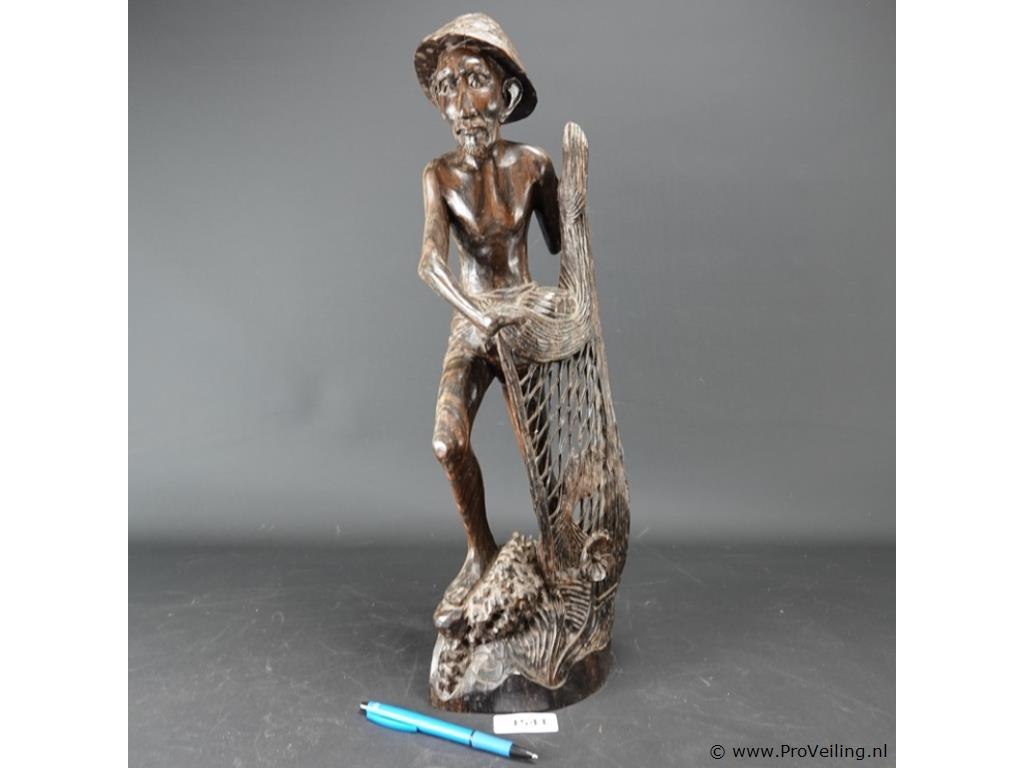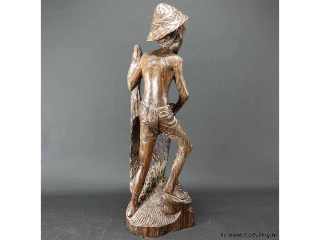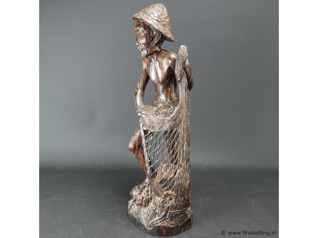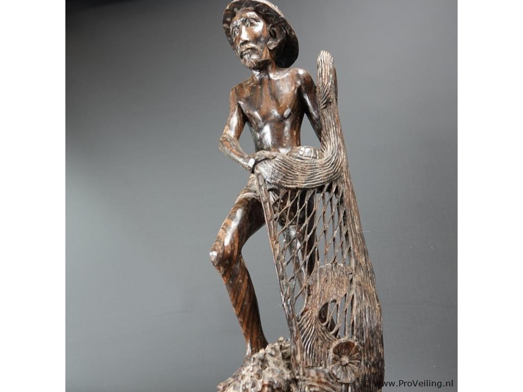 Groot coromandel snijwerk van een indonesische visserman