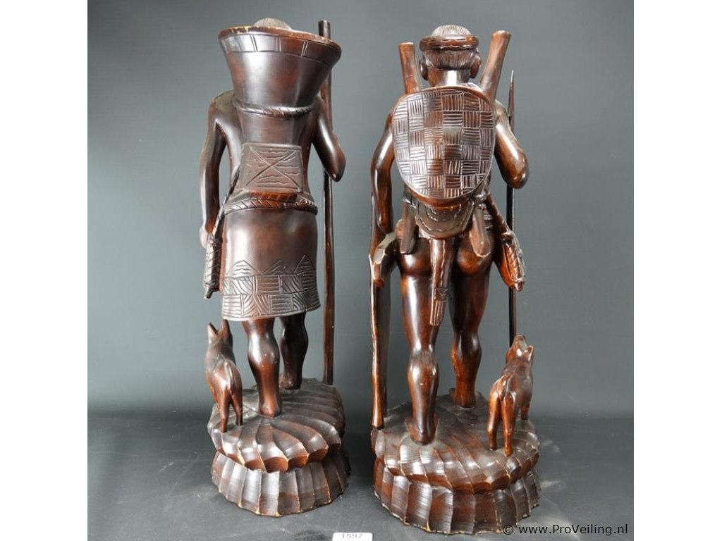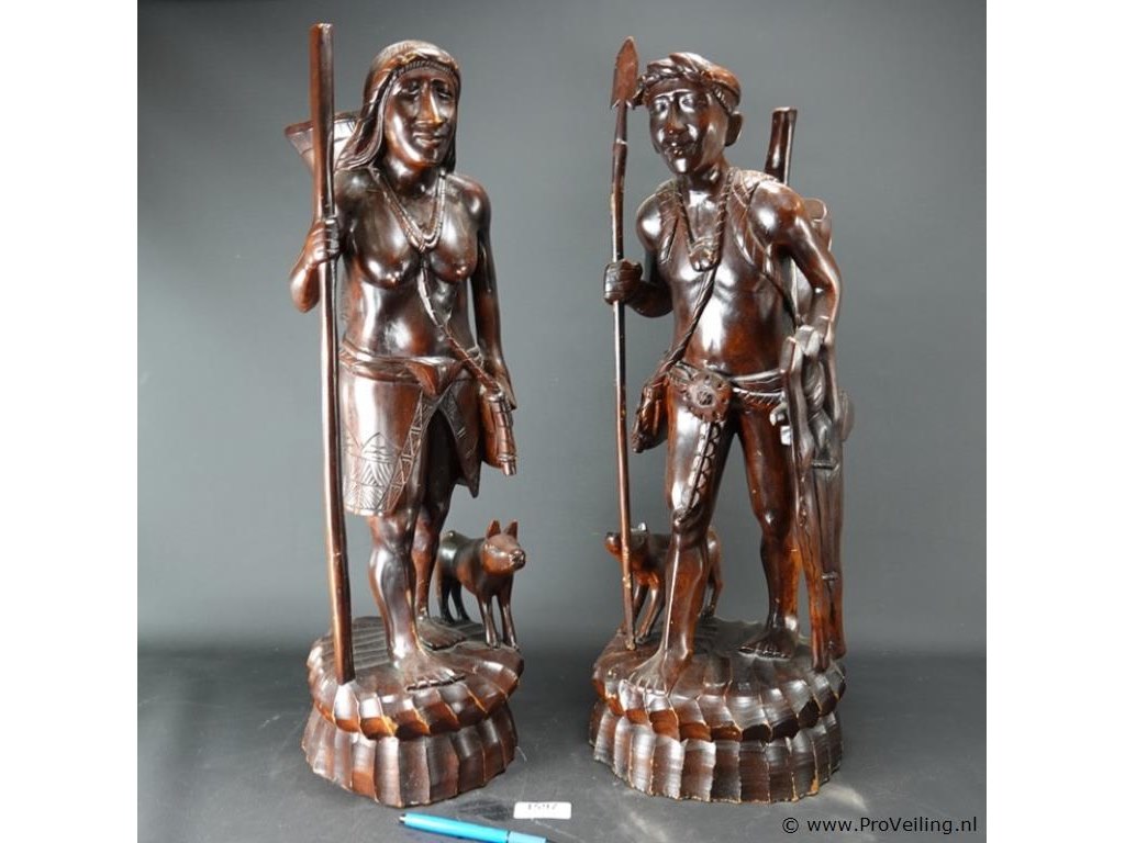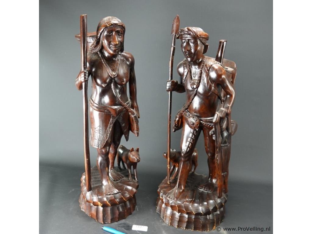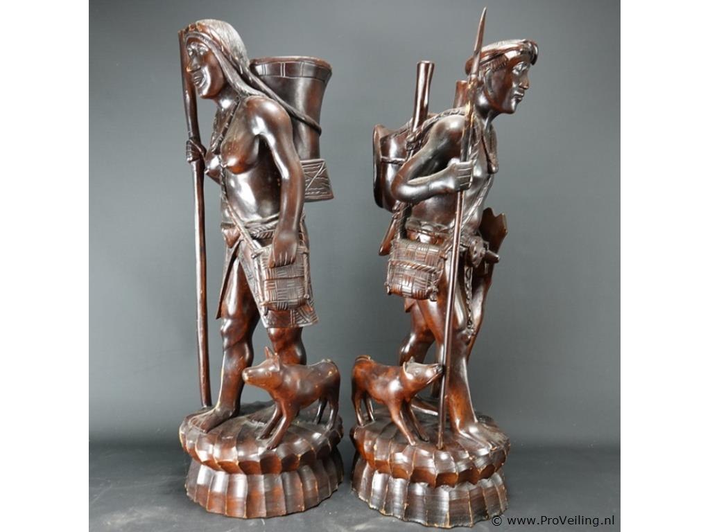 Groot in mahoniehout gesneden indisch paar