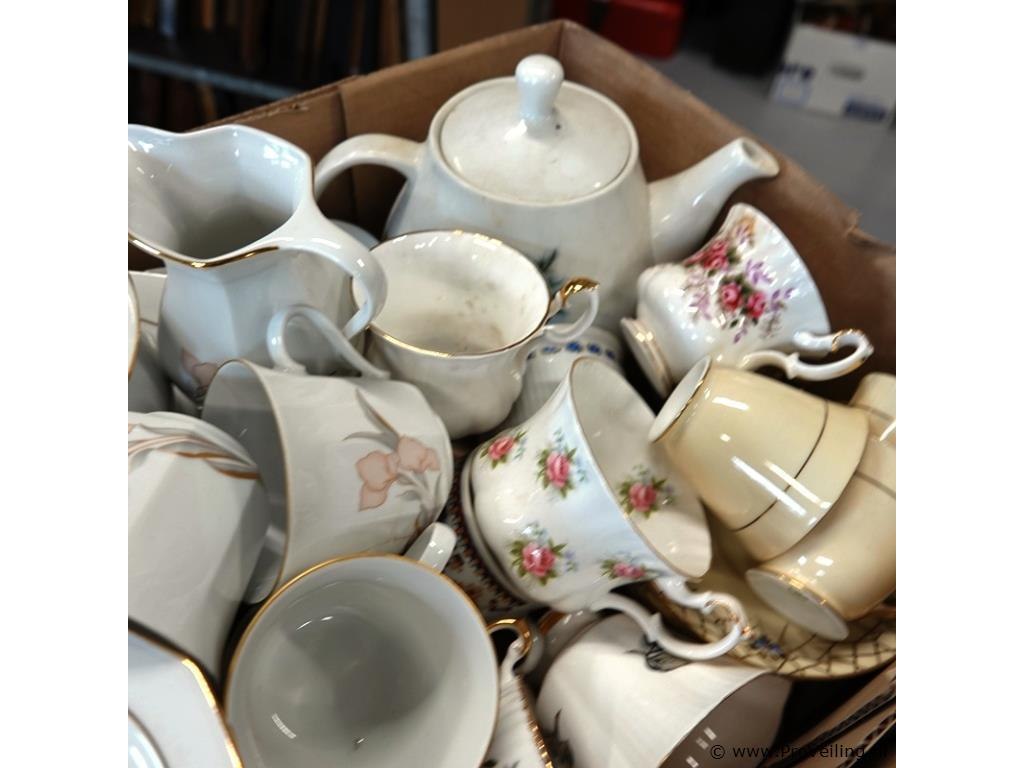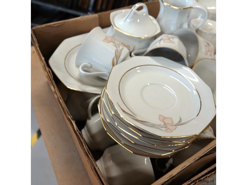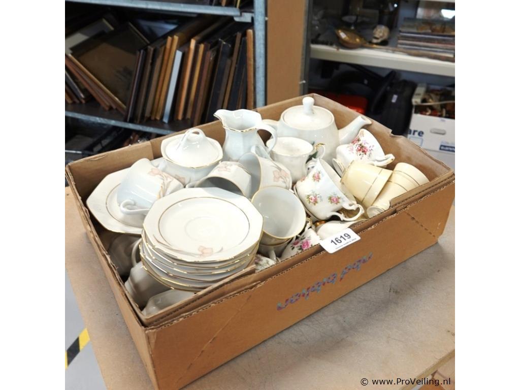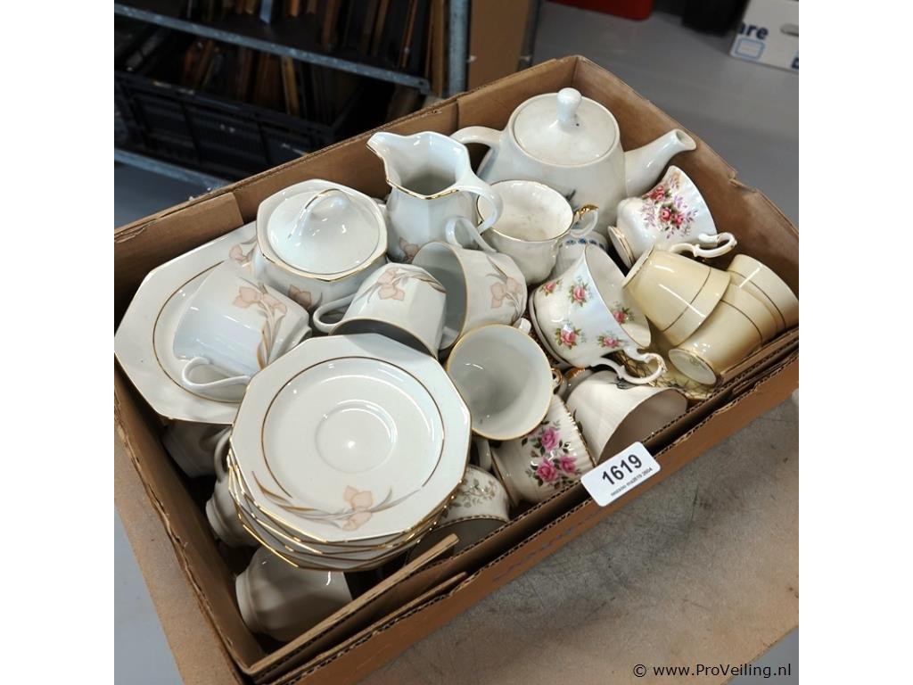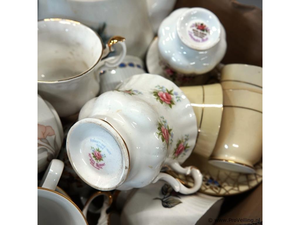Partij kop en schotels (w.o. royal salbert) in doos