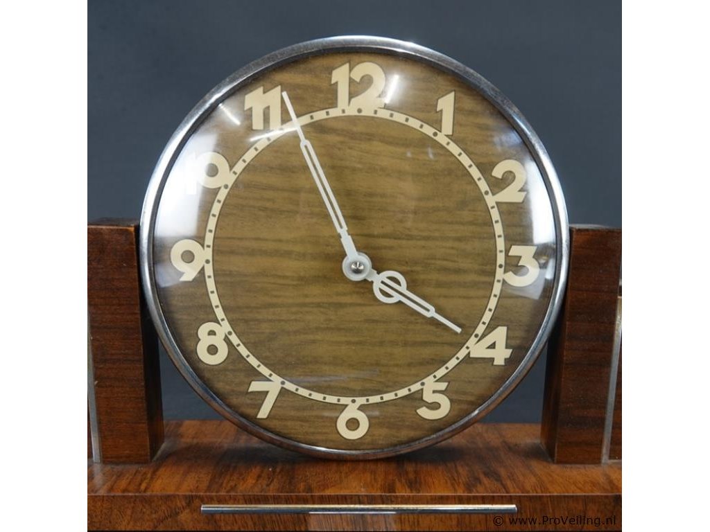 Art deco (1920-1930) palissander houten mantelklok in de stijl van de amsterdamse school