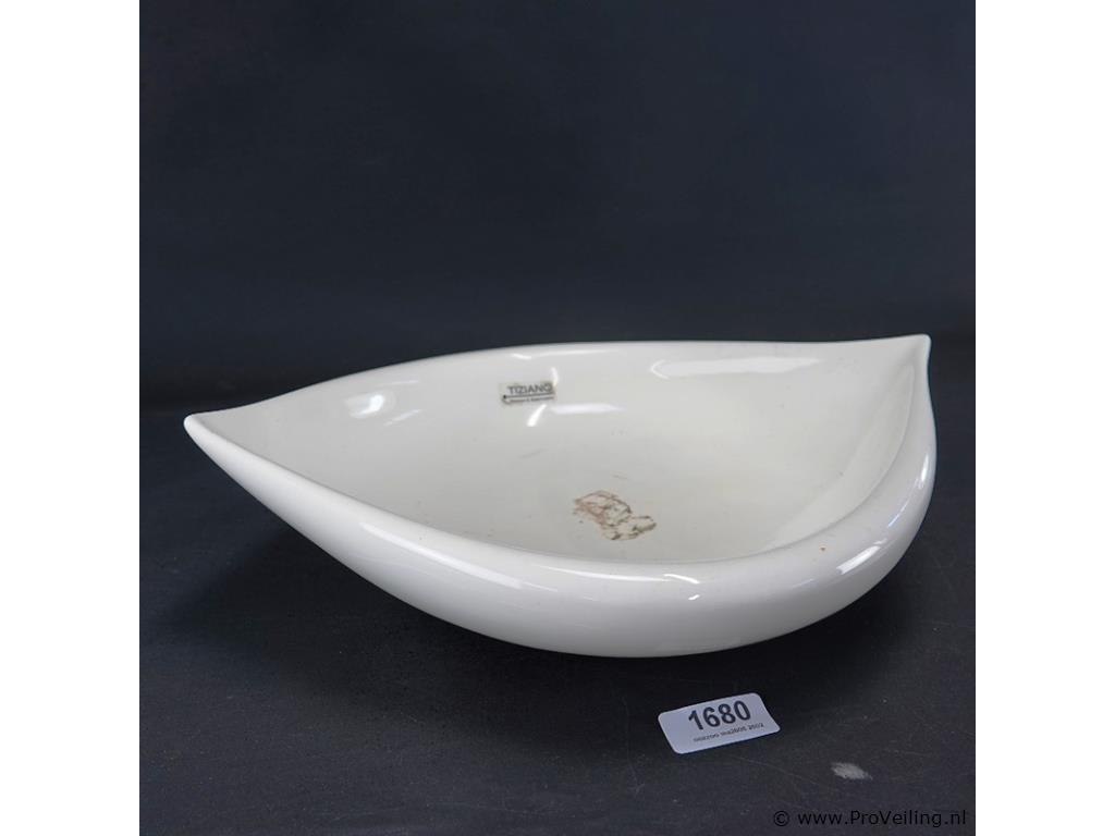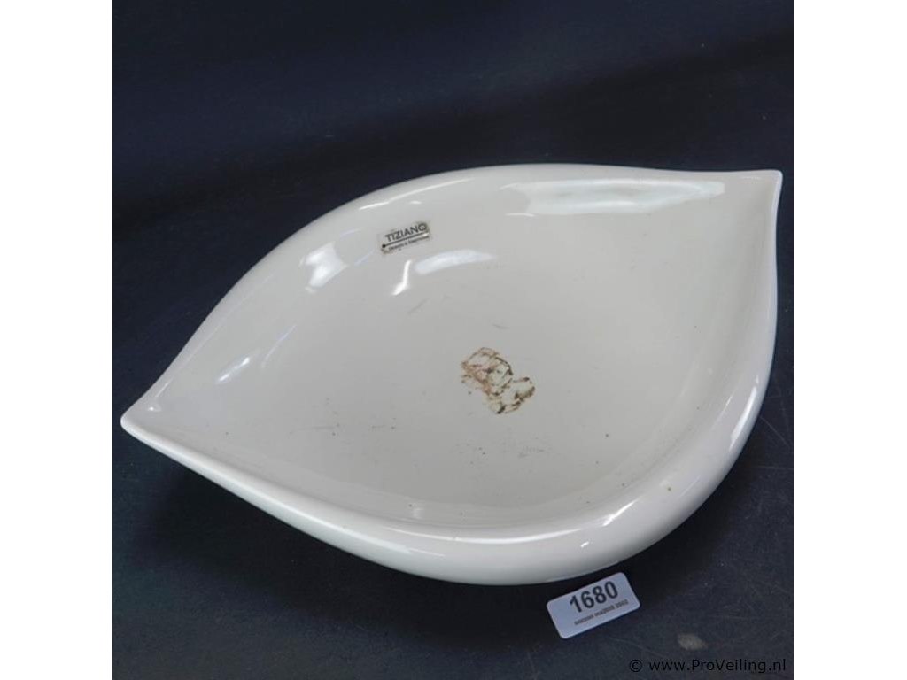 Tiziano Design&Emotions aardewerk schaal. H10cm/L43cm/B33cm/1970Gr. Lees a.u.b. ook de extra veilinginformatie voor deze veiling. G-E-E-N transport of bezorging door Proveiling mogelijk. Eventueel transport of bezorging alleen door u zelf te regelen via b.v. www.brenger.nl .