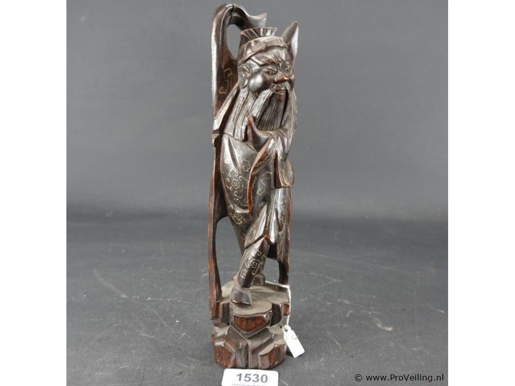 Antiek chinees houtsnijwerk met inleg