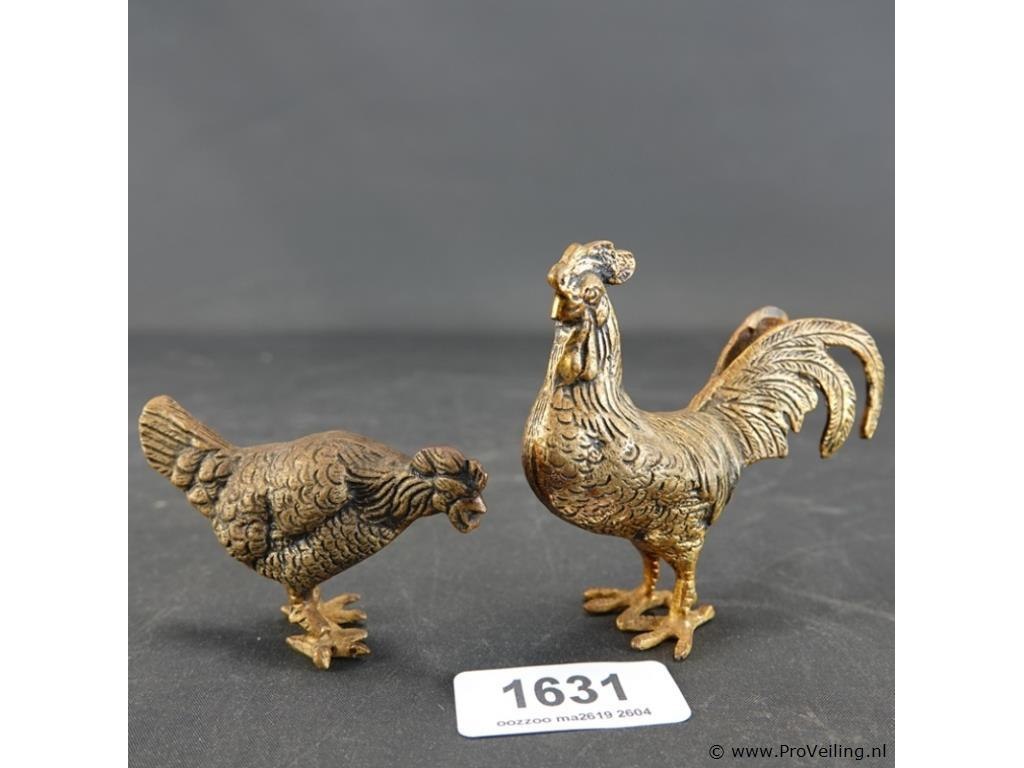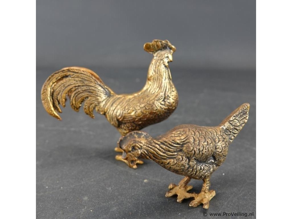 Brons/koper haan en kip