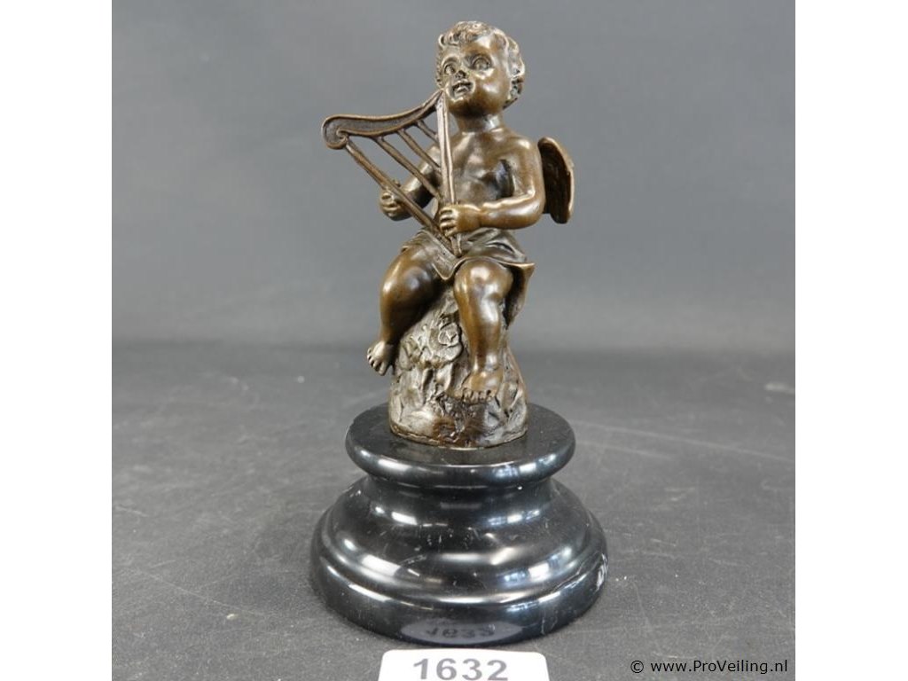 Bronzen putto op marmeren basement