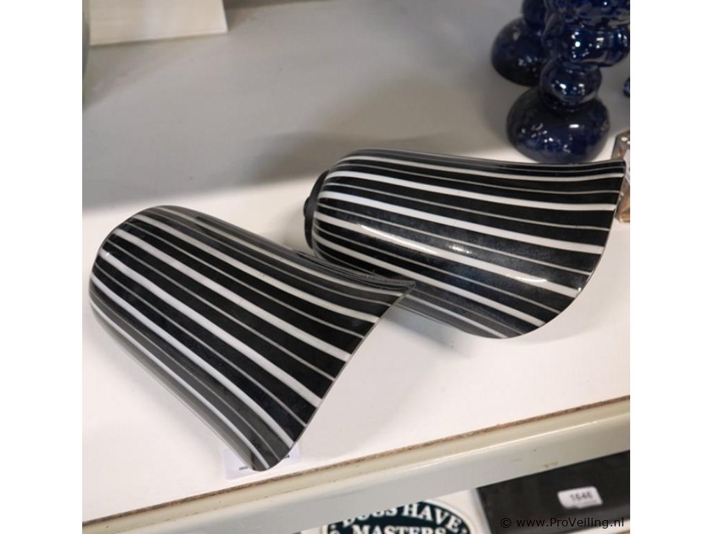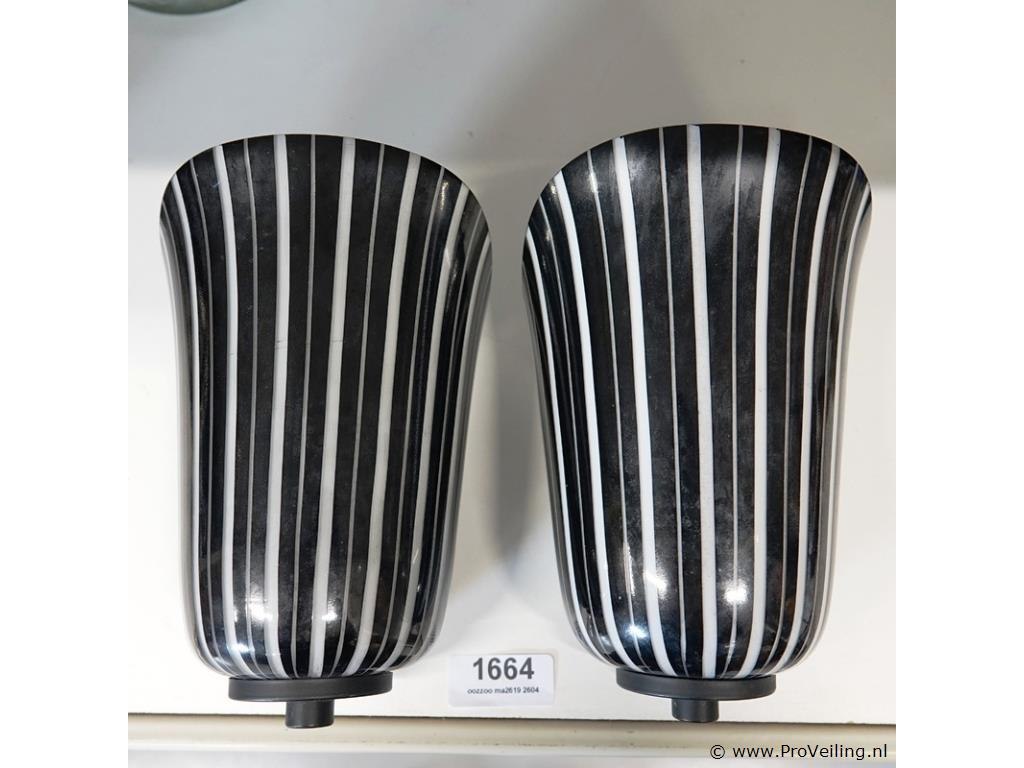Leonardo "Banda Nera" of zebra-streep jaren 70 wandlampen. H22cm/B12cm/D14cm/960Gr. Verwachte opbrengst € 200,00 - € 300,00. Reserve. Dit betreft een tijdens transport kwetsbaar product! Uw transportrisico voor deze kavel is zeker in combinatie met andere kavels hoog. Lees daarom a.u.b. ook de extra veilinginformatie voor deze veiling!.