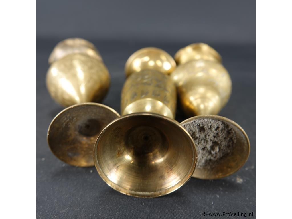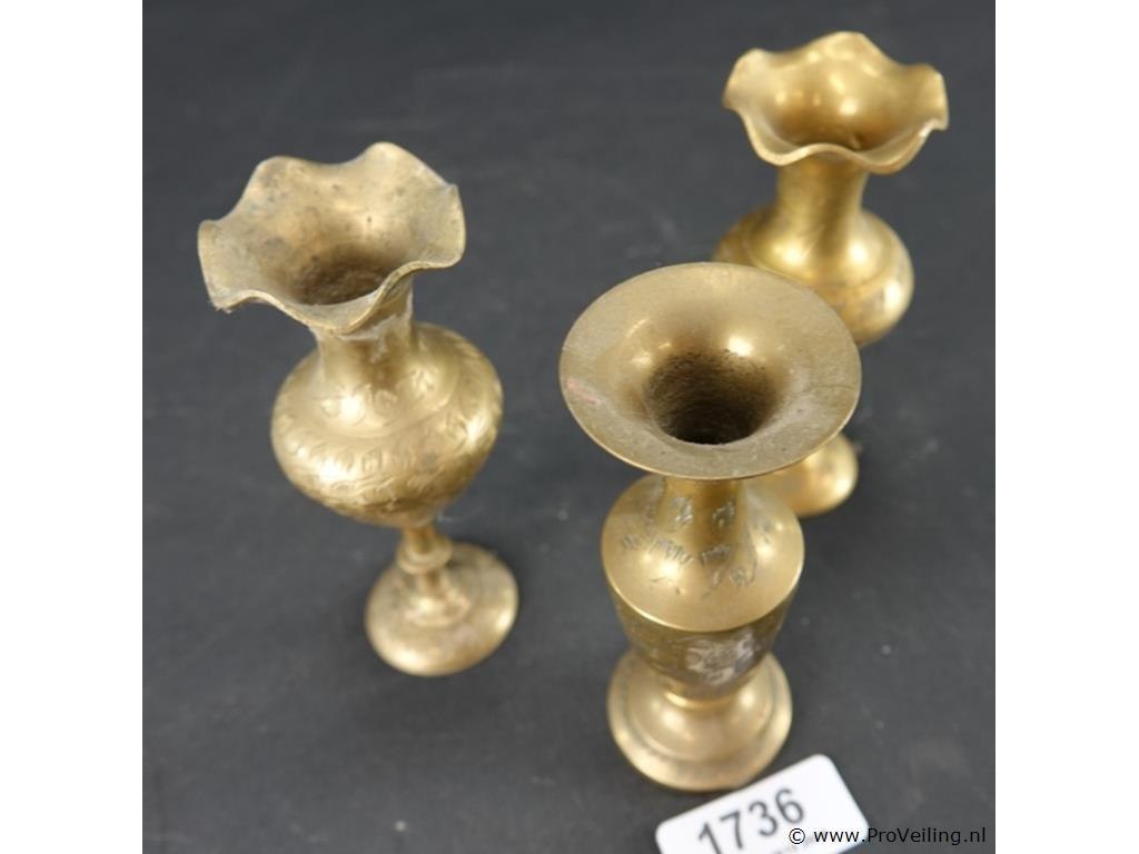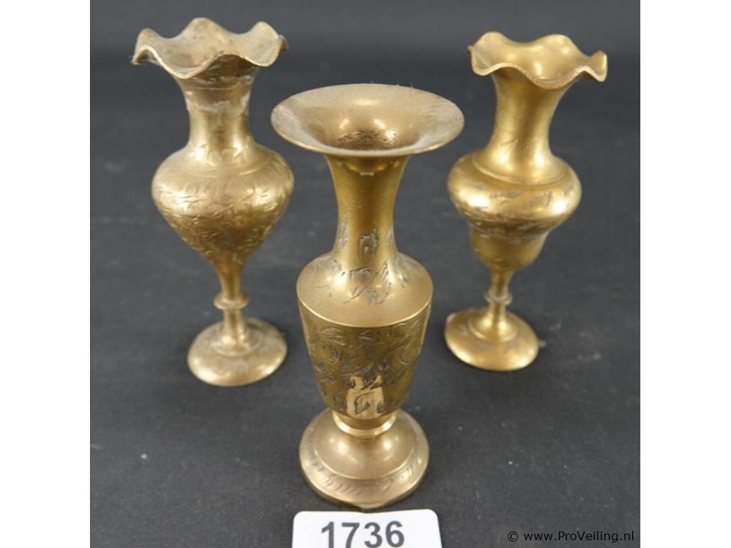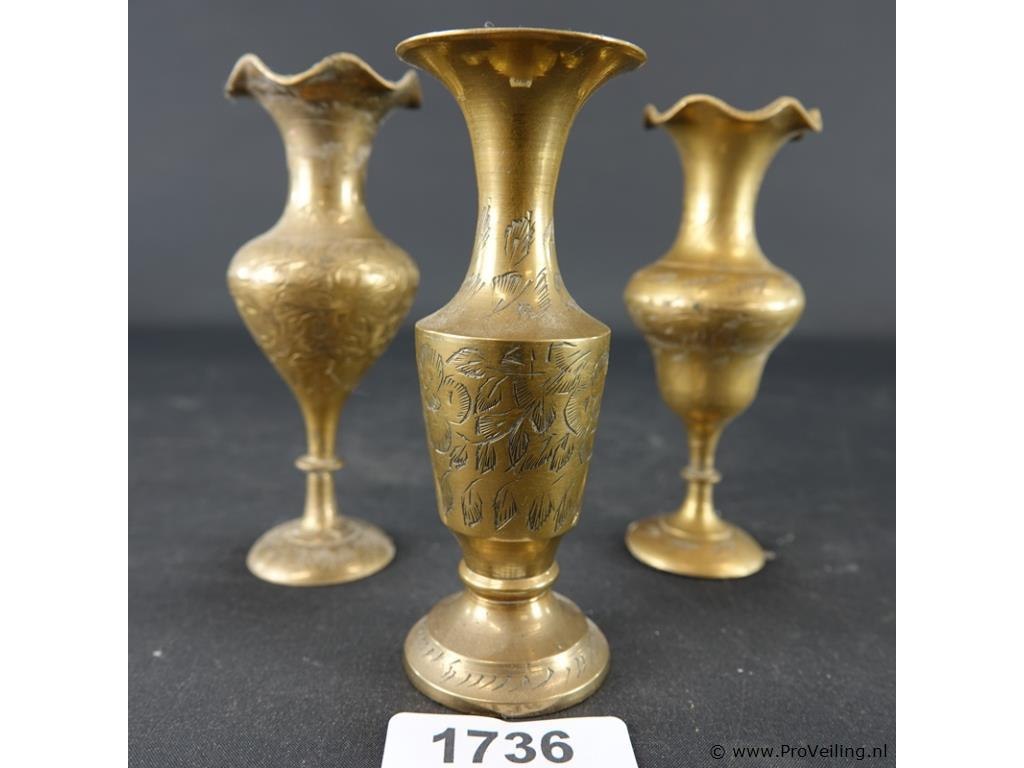 3 messing vaasjes met gedreven decor