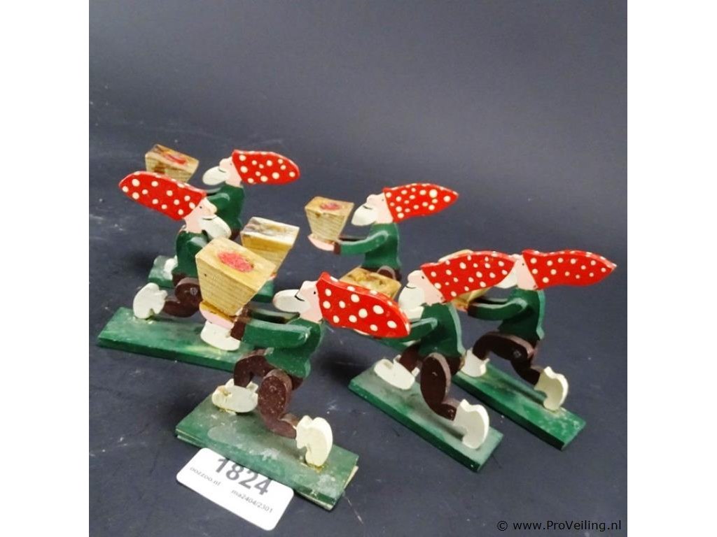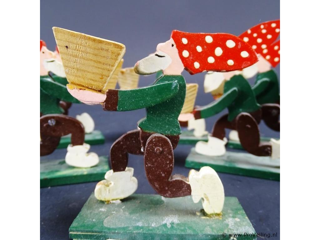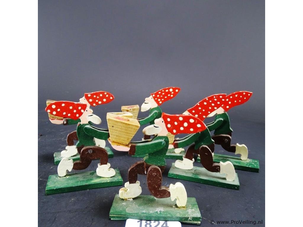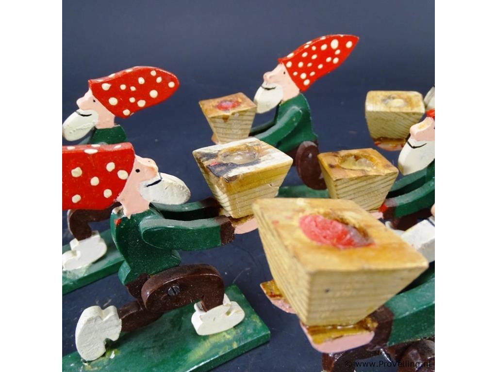 6 houten kabouters als kandelaar