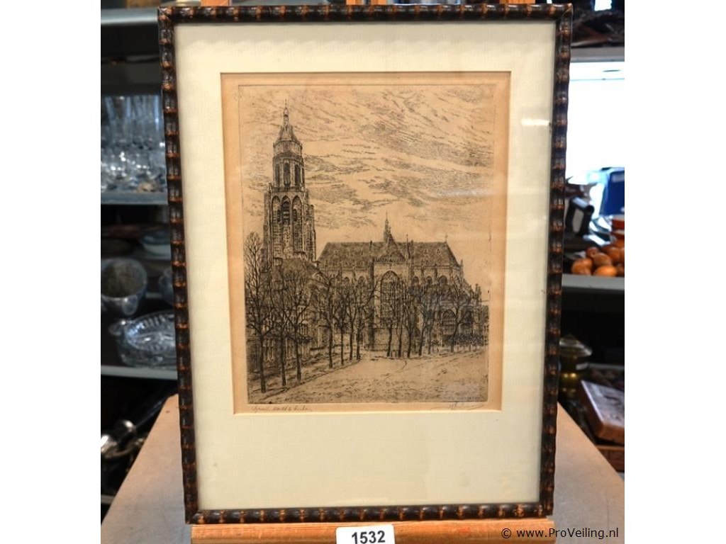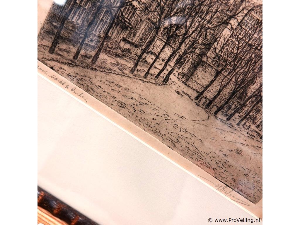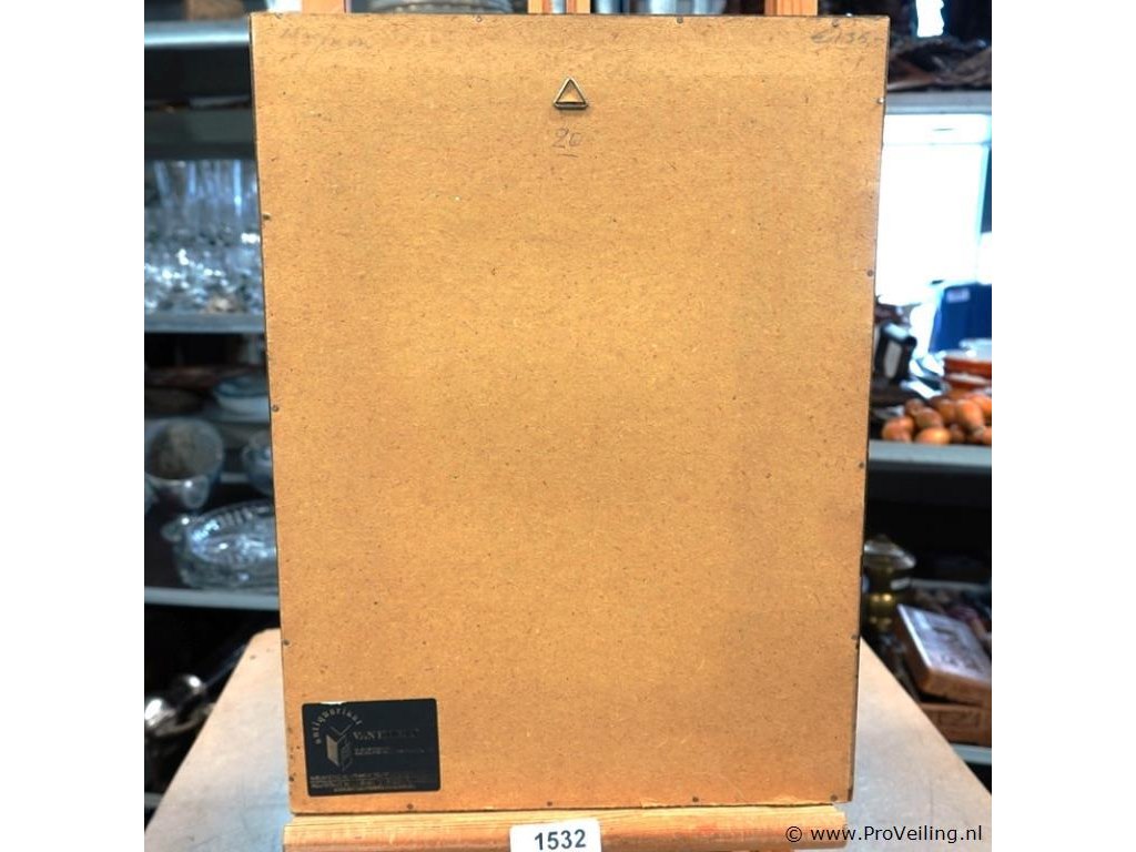 In passe-partout, achter glas en in houten lijst. H40cm/B30cm/880Gr. Dit betreft een tijdens transport kwetsbaar product! Uw transportrisico voor deze kavel is zeker in combinatie met andere kavels hoog. Lees daarom a.u.b. ook de extra veilinginformatie voor deze veiling!.