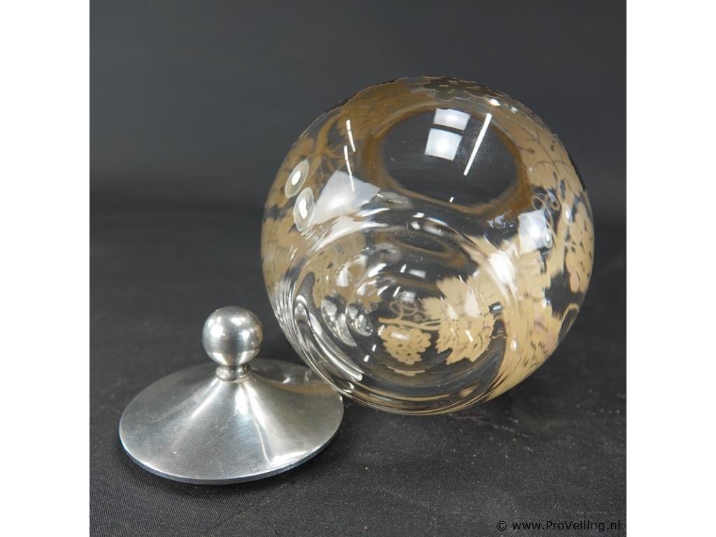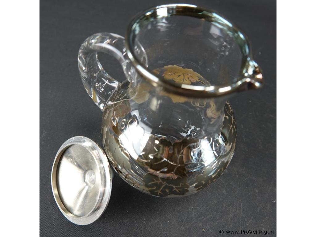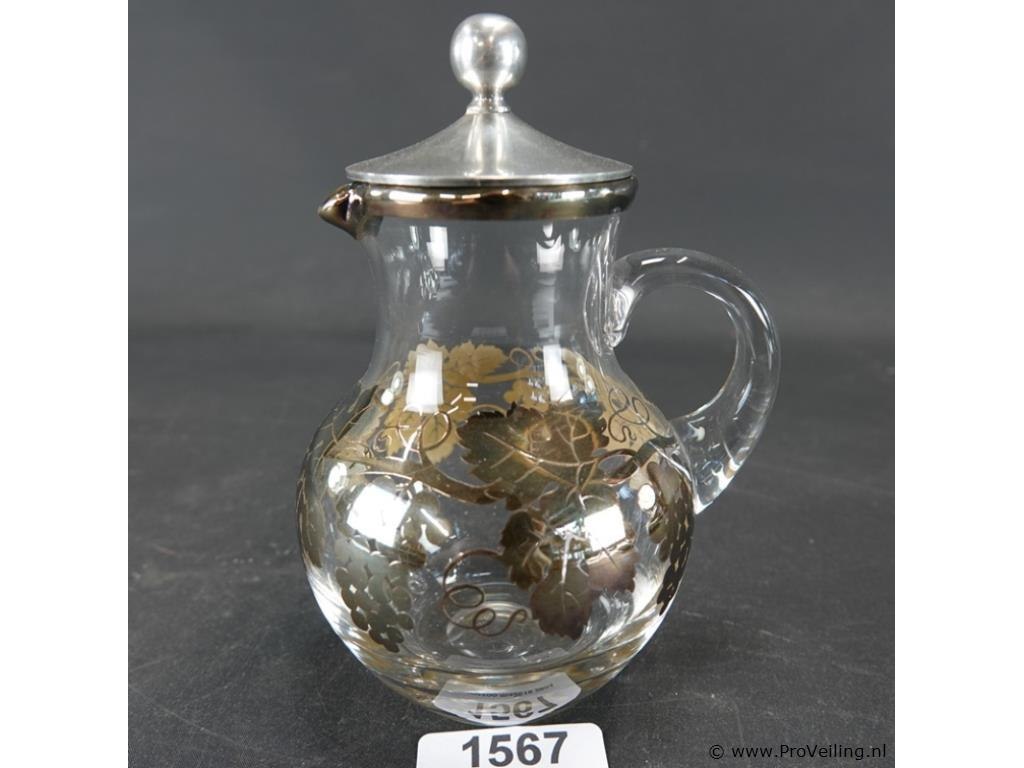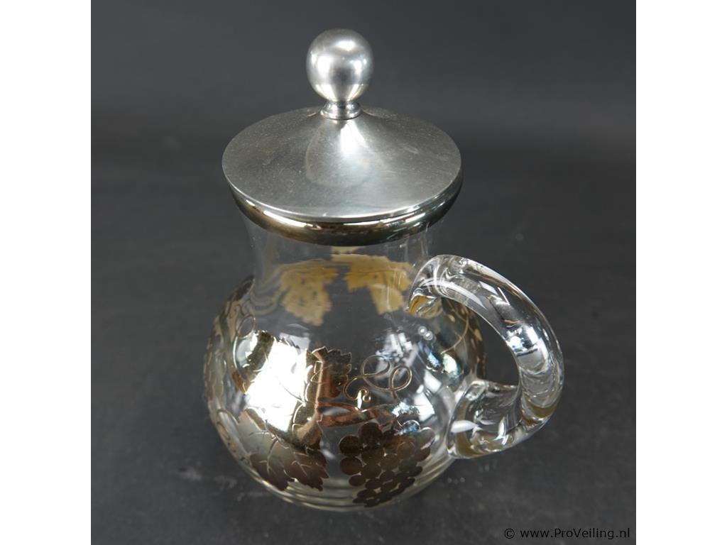 Schenkkan met gouddecor en tinnen deksel