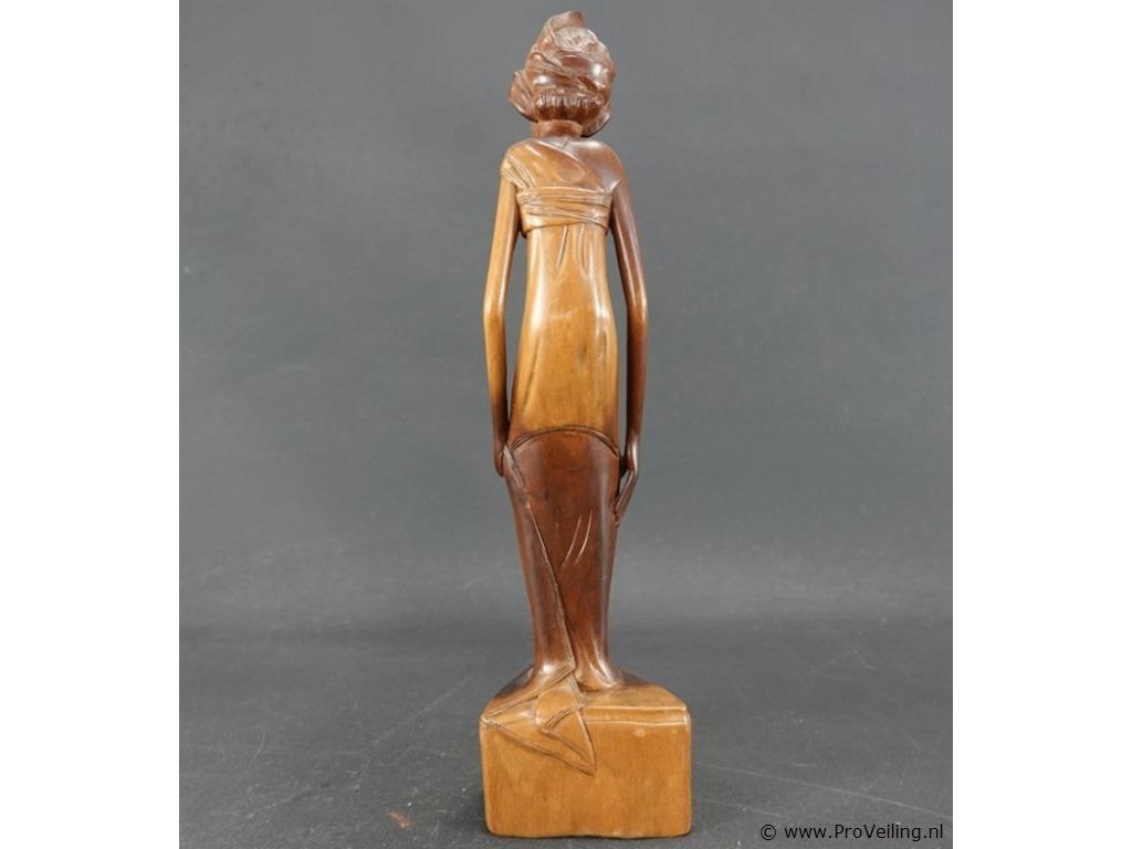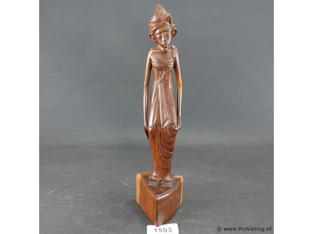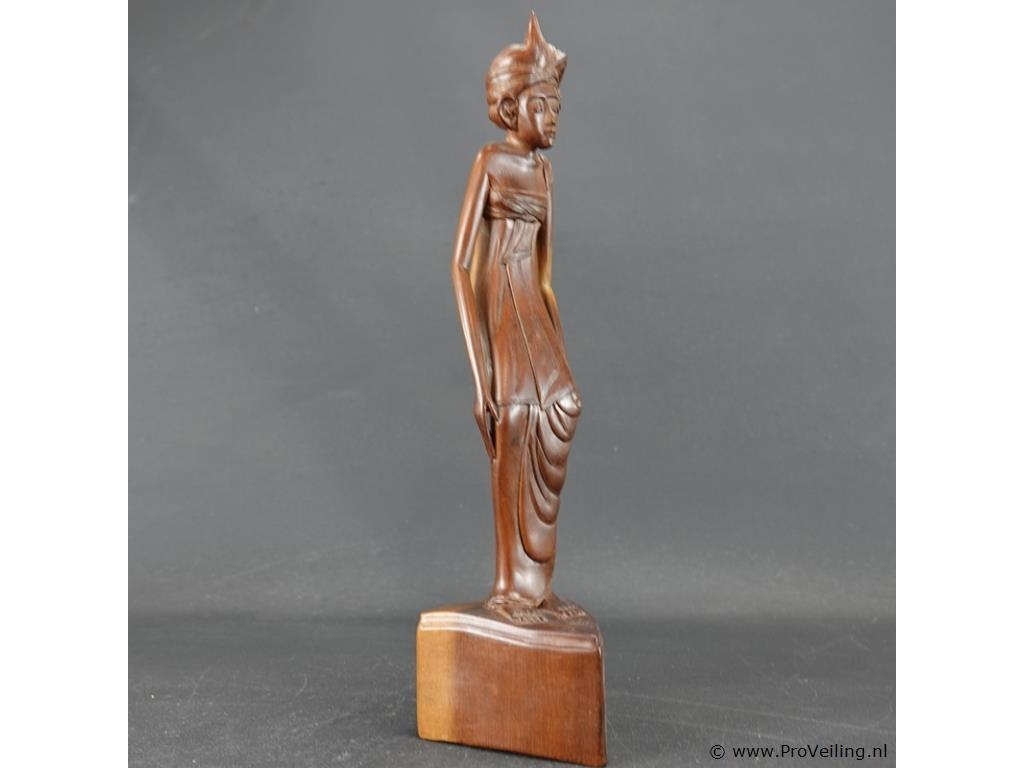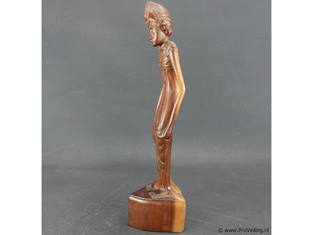 In teakhout handgesneden houten beeld van een balinese vrouw