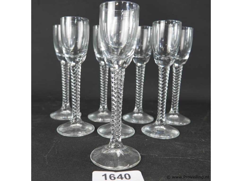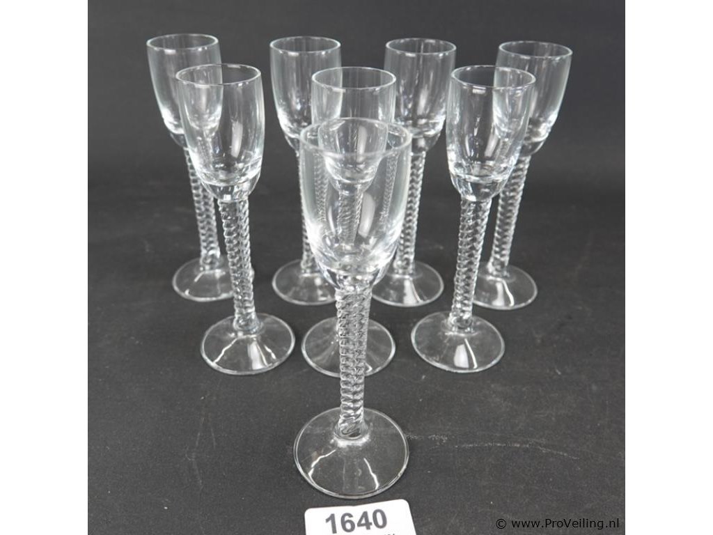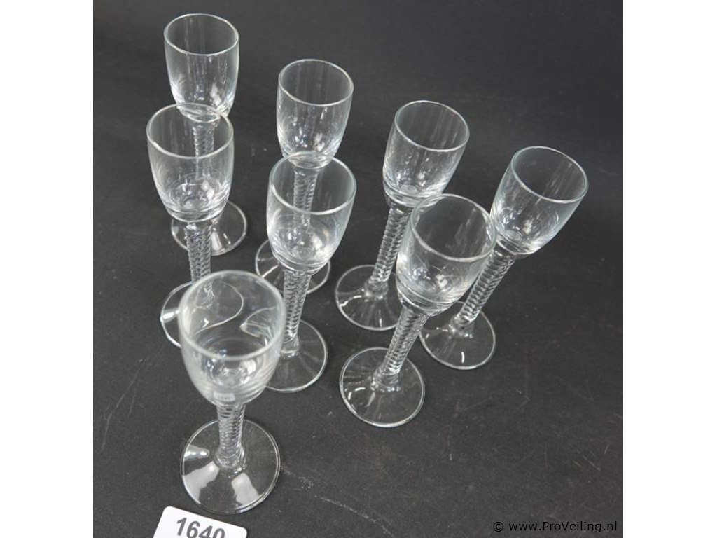 8 Holmegaard Twist glazen, ontworpen door Jacob E. Bang in 1955 voor Kastrup Glasværk. . H16cm/80Gr. Dit betreft een tijdens transport kwetsbaar product! Uw transportrisico voor deze kavel is zeker in combinatie met andere kavels hoog. Lees daarom a.u.b. ook de extra veilinginformatie voor deze veiling!.