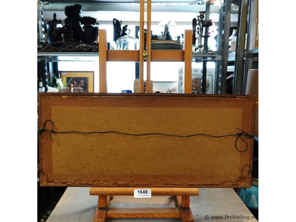 Achter glas en in houten lijst. H26cm/B59cm/940Gr. Dit betreft een tijdens transport kwetsbaar product! Uw transportrisico voor deze kavel is zeker in combinatie met andere kavels hoog. Lees daarom a.u.b. ook de extra veilinginformatie voor deze veiling!.