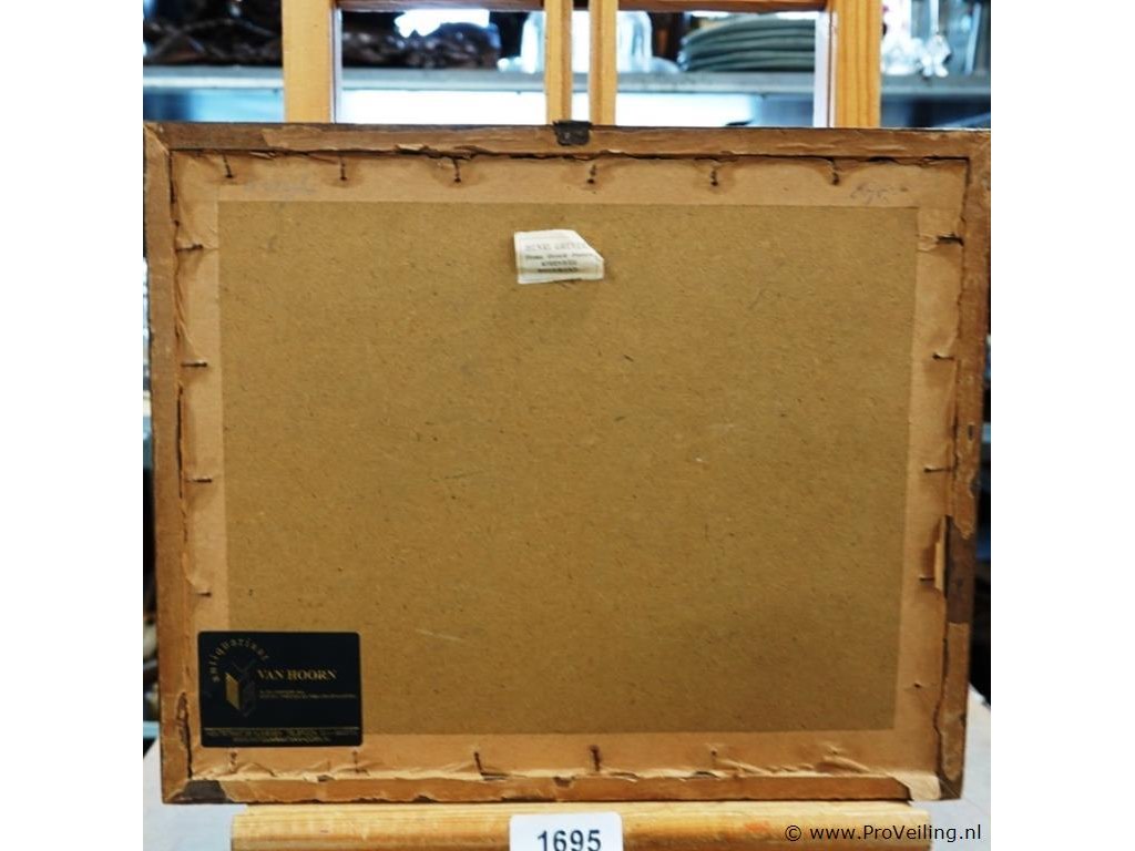 In passe-partout, achter glas en in houten lijst. H29cm/B35cm/530Gr. Dit betreft een tijdens transport kwetsbaar product! Uw transportrisico voor deze kavel is zeker in combinatie met andere kavels hoog. Lees daarom a.u.b. ook de extra veilinginformatie voor deze veiling!.