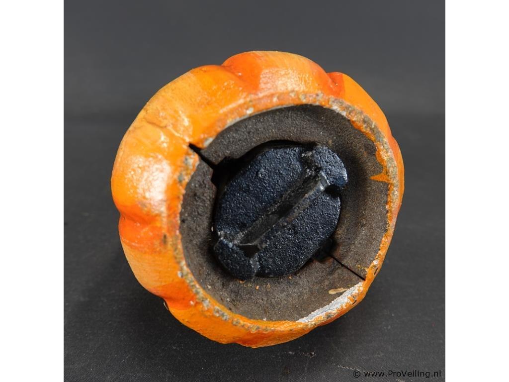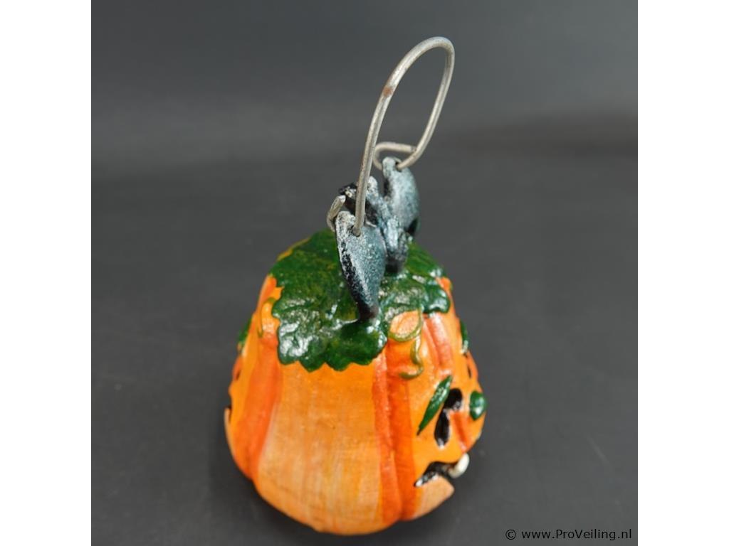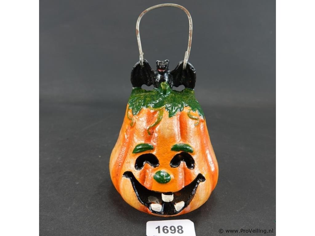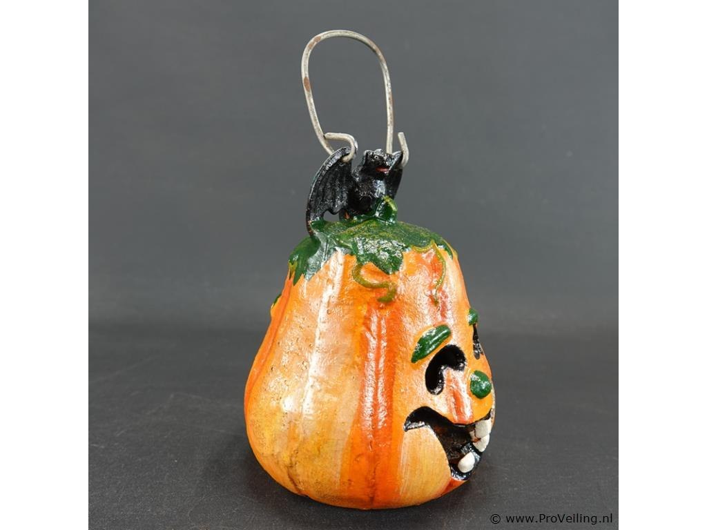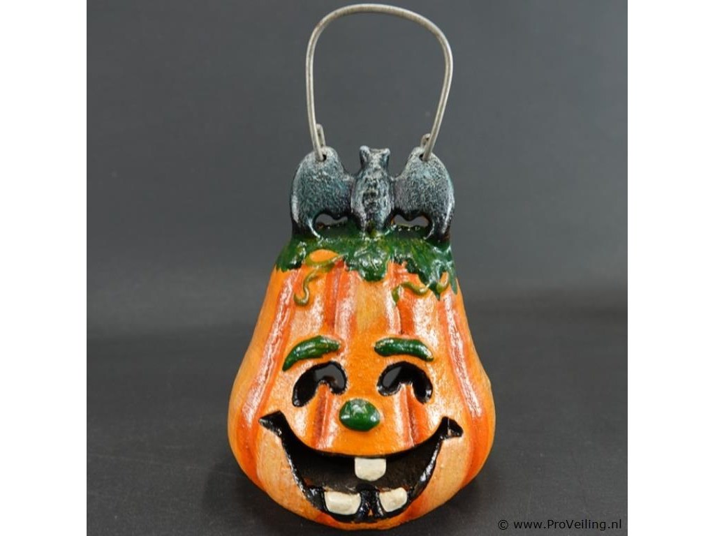 Gietijzeren pompoen lantaarn (windlicht) met een vleermuis bovenop