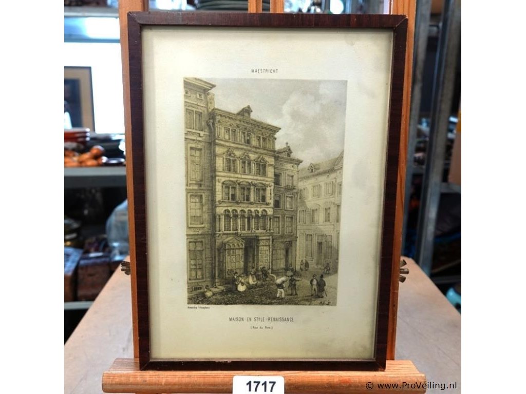 In passe-partout, achter glas en in houten lijst. H32cm/B23cm/380Gr. Dit betreft een tijdens transport kwetsbaar product! Uw transportrisico voor deze kavel is zeker in combinatie met andere kavels hoog. Lees daarom a.u.b. ook de extra veilinginformatie voor deze veiling!.