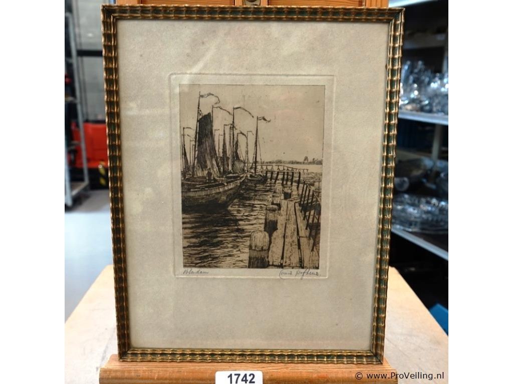 In passe-partout, achter glas en in houten lijst. H35cm/B28cm/660Gr. Dit betreft een tijdens transport kwetsbaar product! Uw transportrisico voor deze kavel is zeker in combinatie met andere kavels hoog. Lees daarom a.u.b. ook de extra veilinginformatie voor deze veiling!.