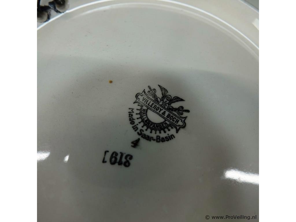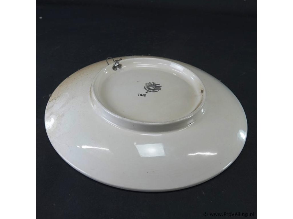 Antiek villeroy & boch wandbord met een landschap en paarden