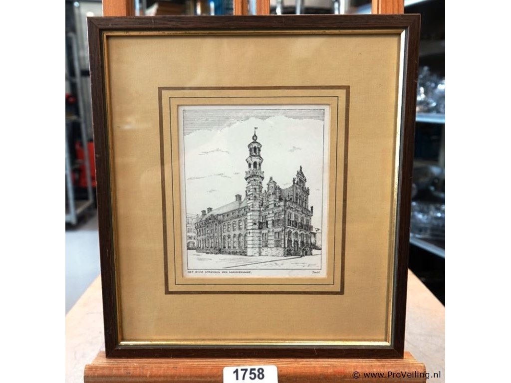 Antieke druk het oude stadhuis van 's Gravenhage. H29cm/B27cm/520Gr. Dit betreft een tijdens transport kwetsbaar product! Uw transportrisico voor deze kavel is zeker in combinatie met andere kavels hoog. Lees daarom a.u.b. ook de extra veilinginformatie voor deze veiling!.