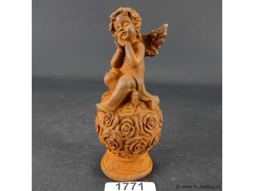 Ijzeren 'Sorella' engel beeldje met roestpatina. H17cm/590Gr. Dit betreft een tijdens transport kwetsbaar product! Uw transportrisico voor deze kavel is zeker in combinatie met andere kavels hoog. Lees daarom a.u.b. ook de extra veilinginformatie voor deze veiling!.