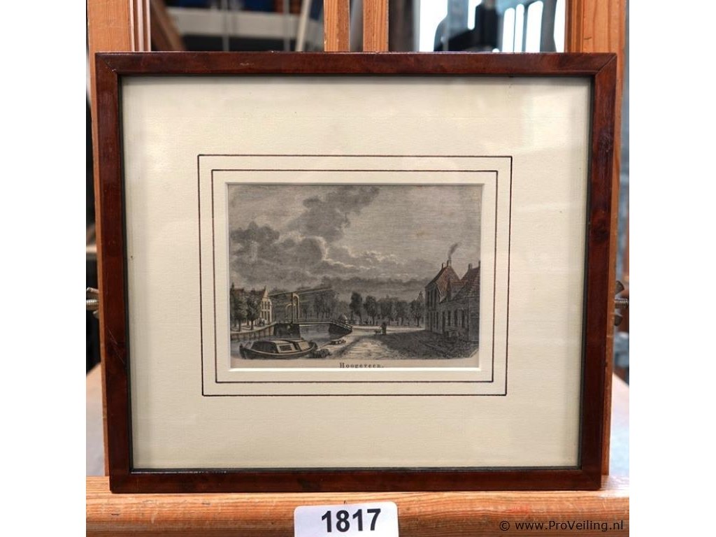 In passe-partout, achter glas en in houten lijst. H20cm/B23cm/400Gr. Dit betreft een tijdens transport kwetsbaar product! Uw transportrisico voor deze kavel is zeker in combinatie met andere kavels hoog. Lees daarom a.u.b. ook de extra veilinginformatie voor deze veiling!.
