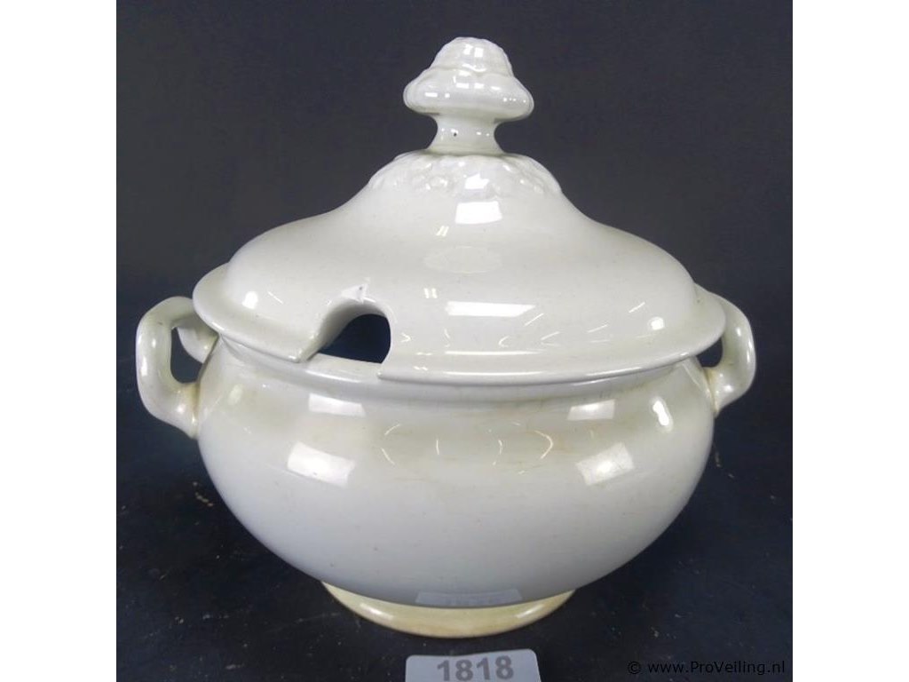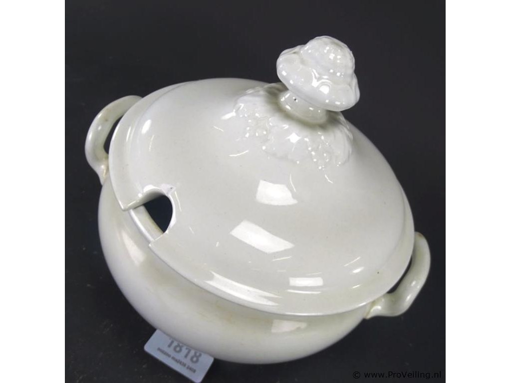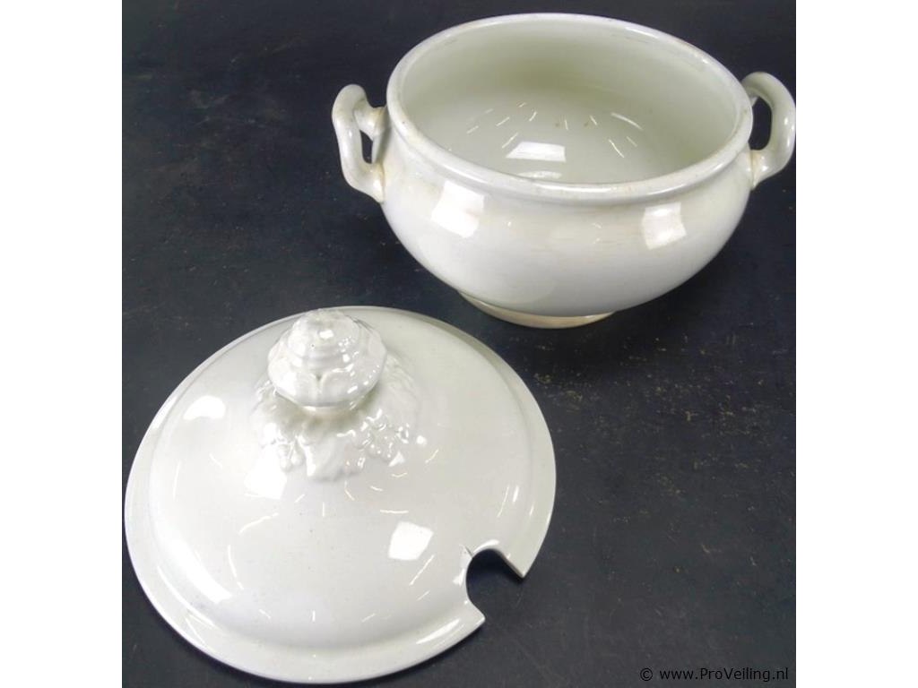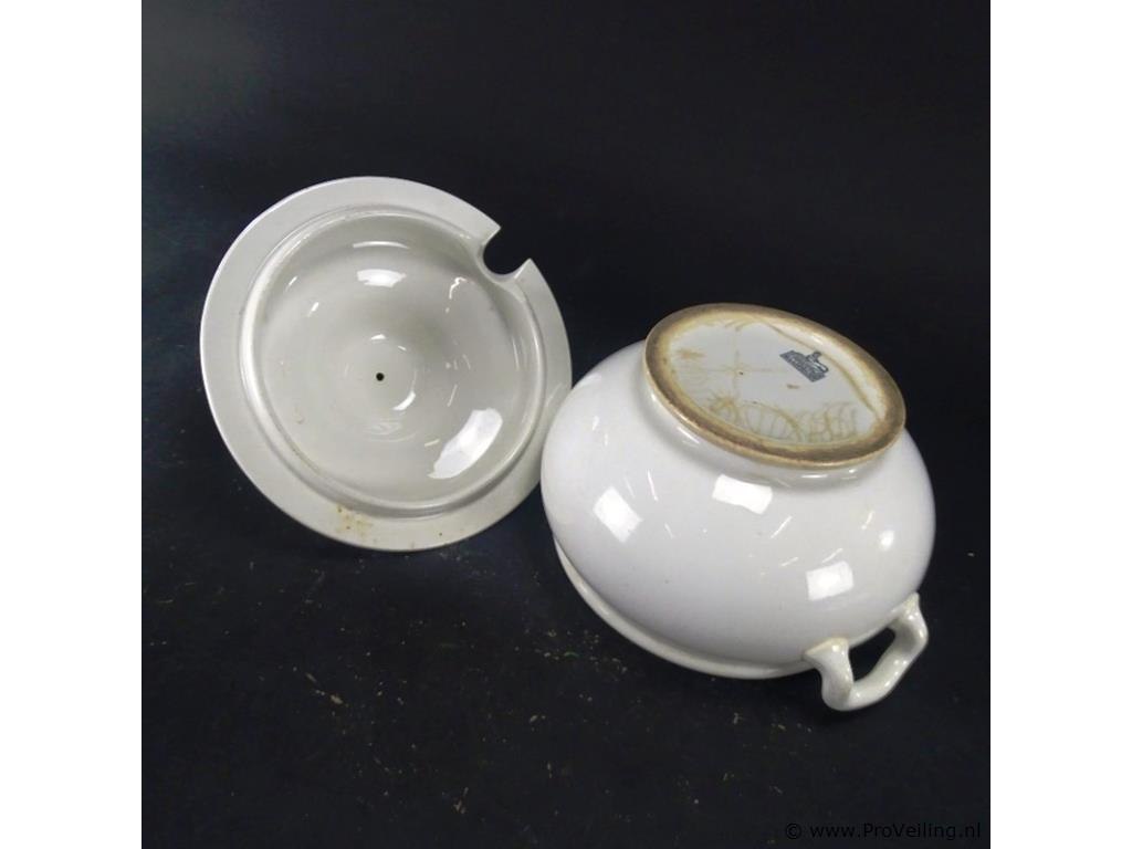 P. Regout & Co Terrine. Aan onderzijde gemerkt. H23cm/B26cm/1450Gr. Dit betreft een tijdens transport kwetsbaar product! Uw transportrisico voor deze kavel is zeker in combinatie met andere kavels hoog. Lees daarom a.u.b. ook de extra veilinginformatie voor deze veiling!.