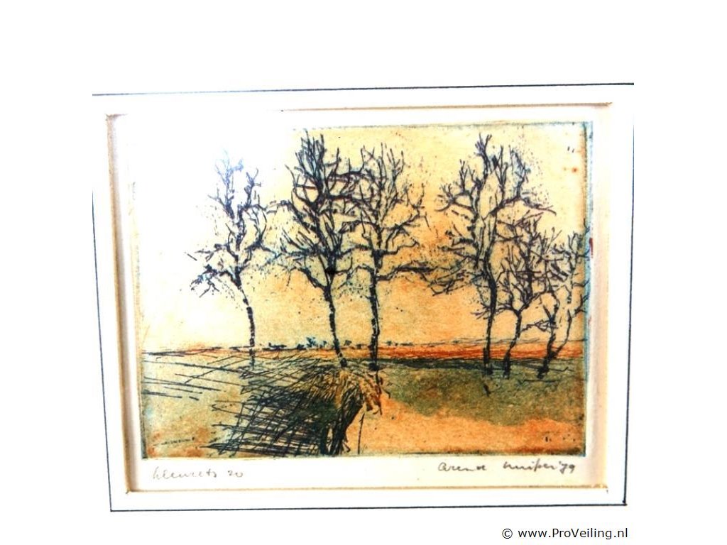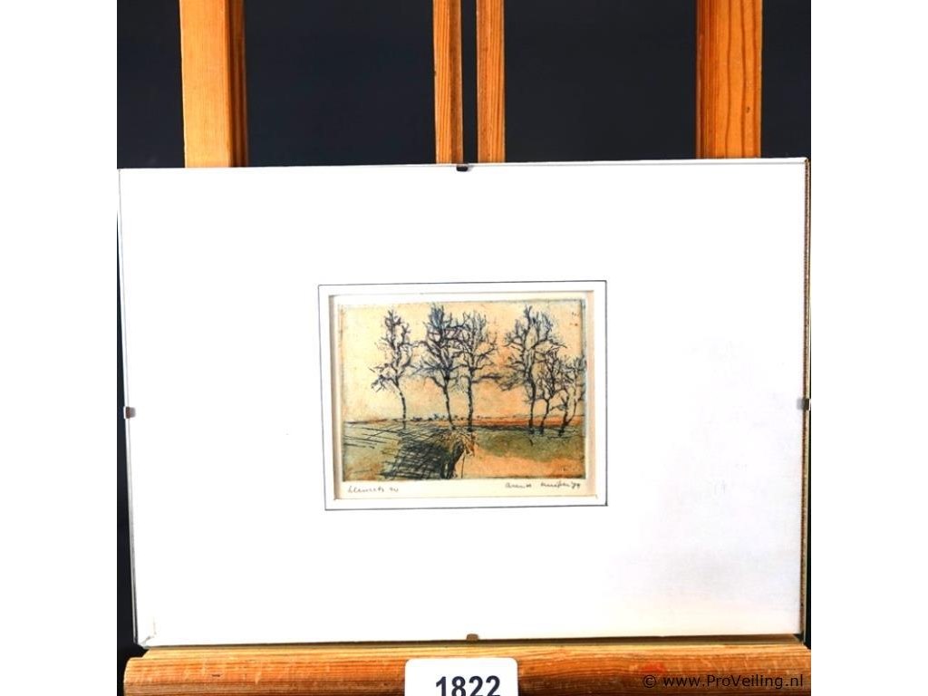 In passe-partout, achter glas en in houten lijst. H21cm/B29cm/580Gr. Dit betreft een tijdens transport kwetsbaar product! Uw transportrisico voor deze kavel is zeker in combinatie met andere kavels hoog. Lees daarom a.u.b. ook de extra veilinginformatie voor deze veiling!.