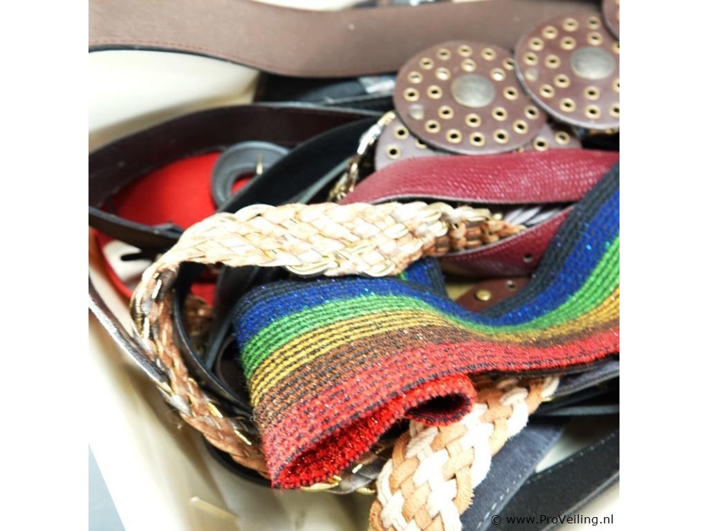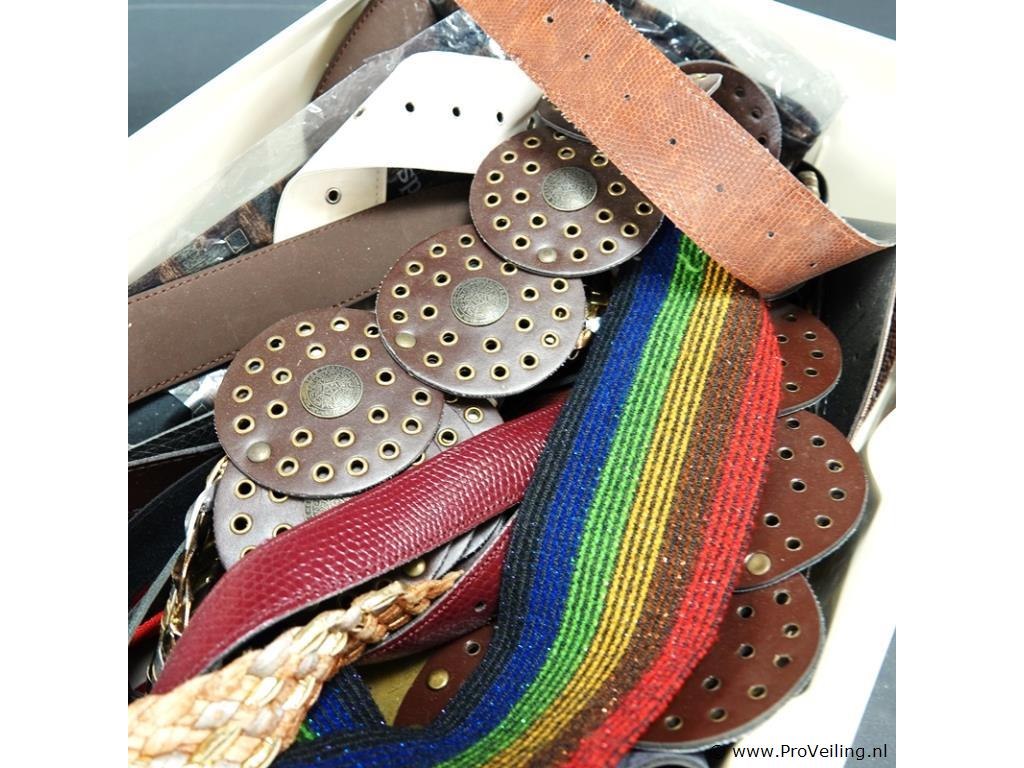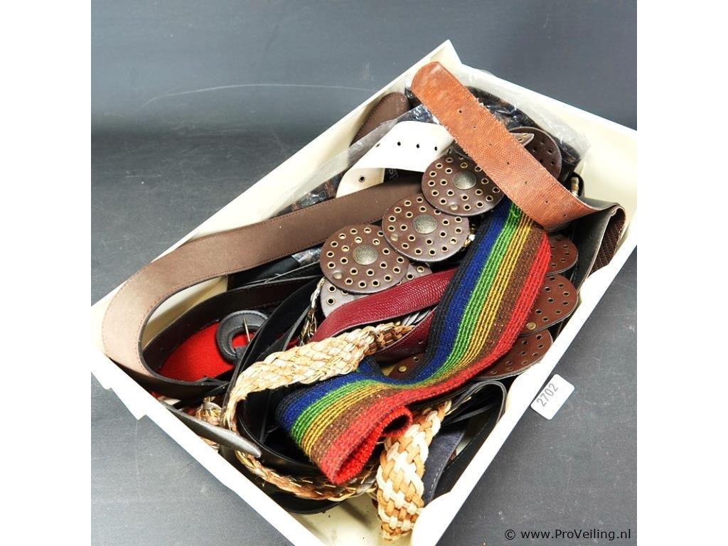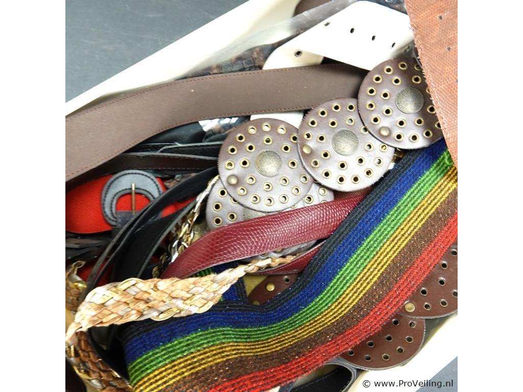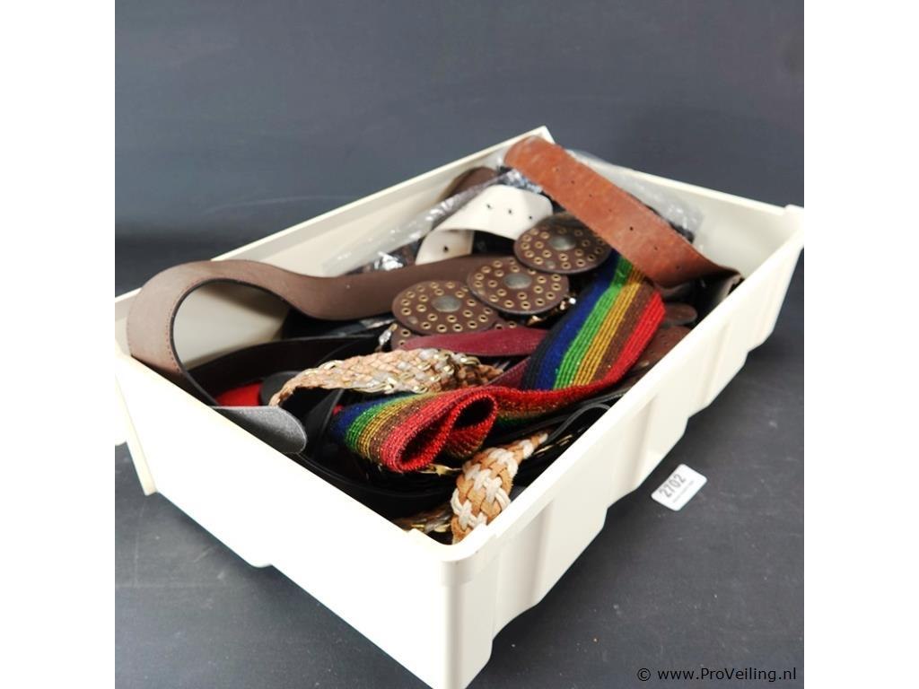 Plastic bak gevuld met riemen en ceinturen
