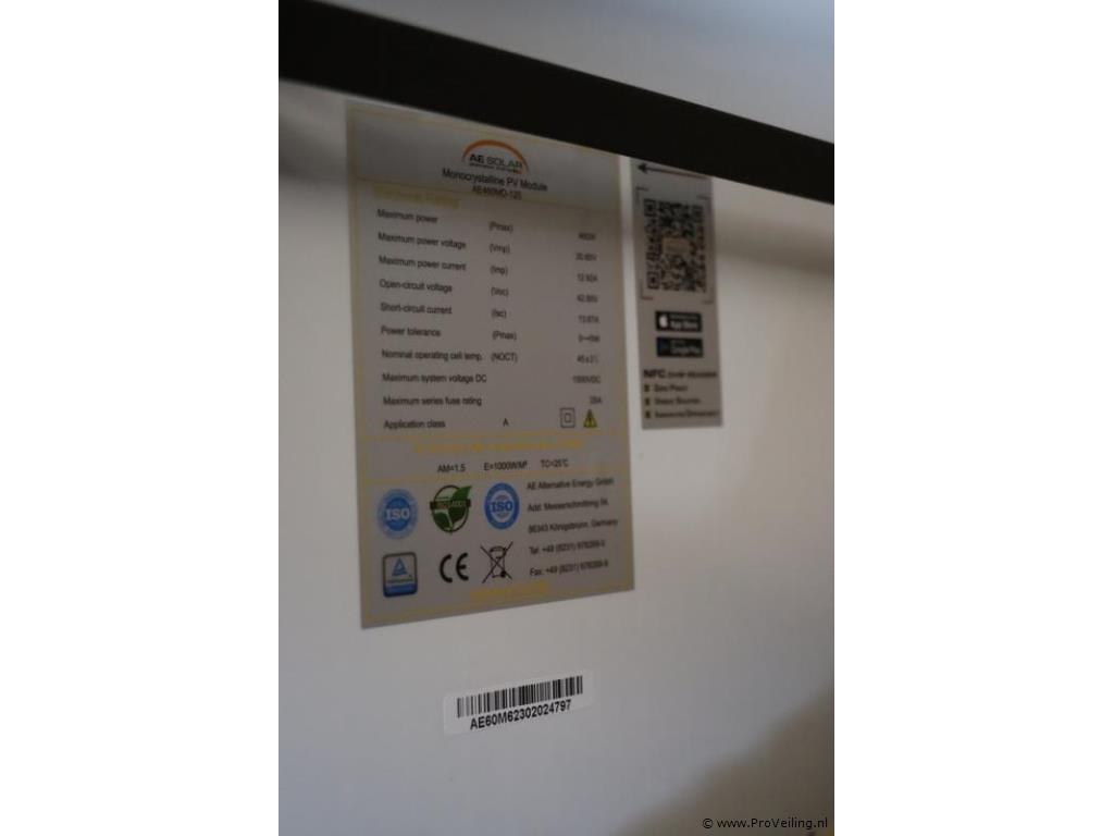 AE Aurora Zonnepaneel AE460MD-120 - 1 pallet á 36 stuks; afmetingen ca. 190.2x113.3x3cm; gewicht ca. 880kg; zie afbeeldingen.