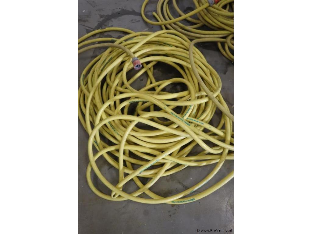 Partij tuinslangen, diverse lengtes o.a. 6 en 25mtr; zie afbeeldingen.