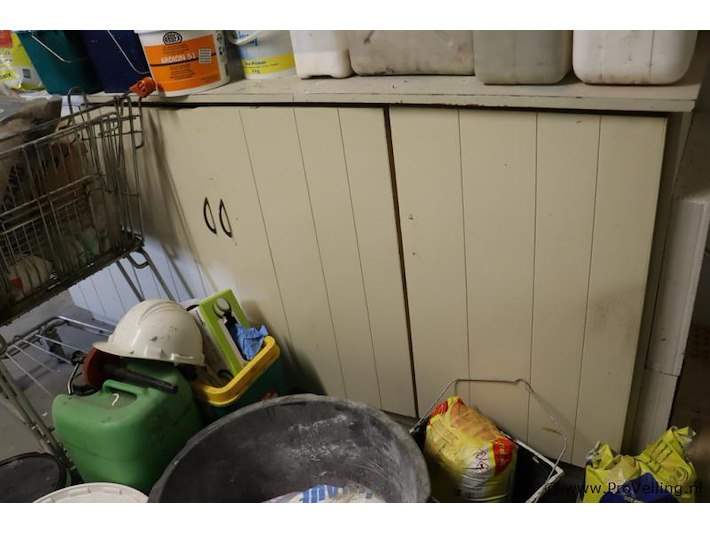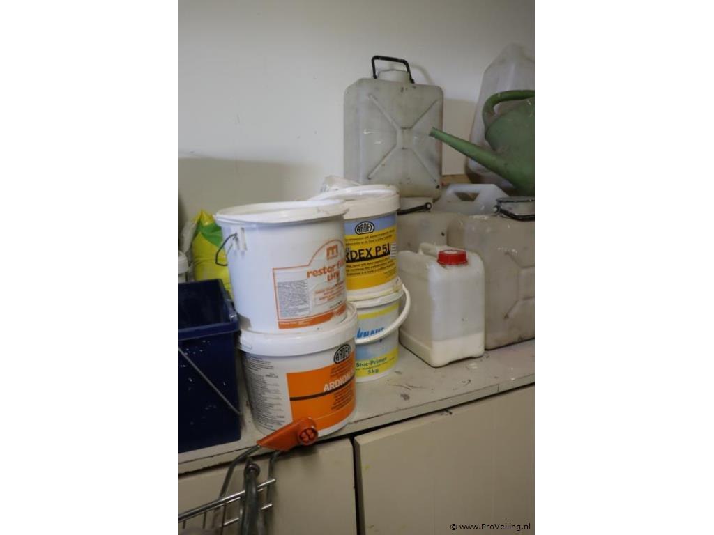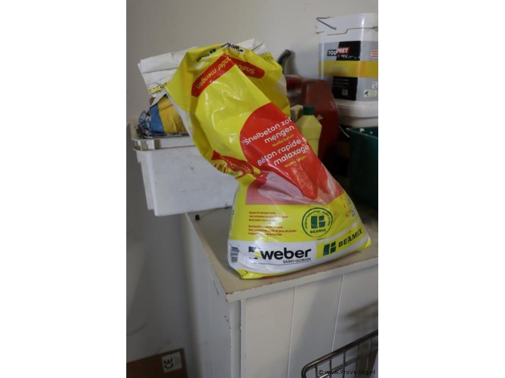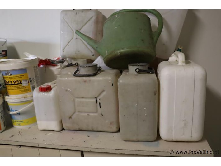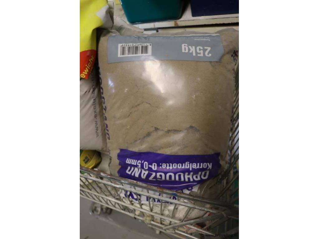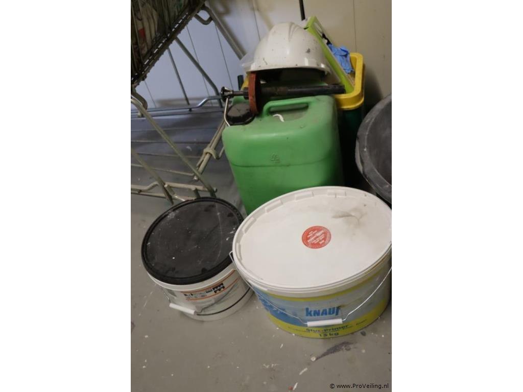 Partij diversen o.a. Excluton Sierzand, speciekuip, jerrycans, metselmortel & plantengieter; zie afbeeldingen.